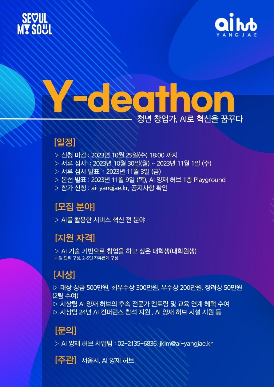 11월9일 AI 양재 허브서…강연·대담·멘토링 등 진행AI 동아리 아이디어톤 대회 결선…대상 1팀 500만원(서울시 제공)관련 키워드서울시AI양재허브AI인공지능아이디어톤포럼윤다정 기자 태국서 달리던 열차 덮친 대형 크레인…22명 숨지고 30명 다쳐베네수 임시대통령, 마두로가 막았던 X 접속 풀어…"단결해야"관련 기사올해 서초 10대 뉴스…1위는 '숨은 영웅 청소기동대 쇼츠 585만 돌파'전성수 서초구청장 "공약 80% 이행…남은 기간 '쌍특구' 집중"홍릉 강소특구 2단계 5년간 200억 투입…메디클러스터로 육성최호정 서울시의장, 서울AI허브 방문…"AI 산업 선도"주용태 서울시 실장 "양재 AI 혁신지구 조성…인프라 10배 확대"