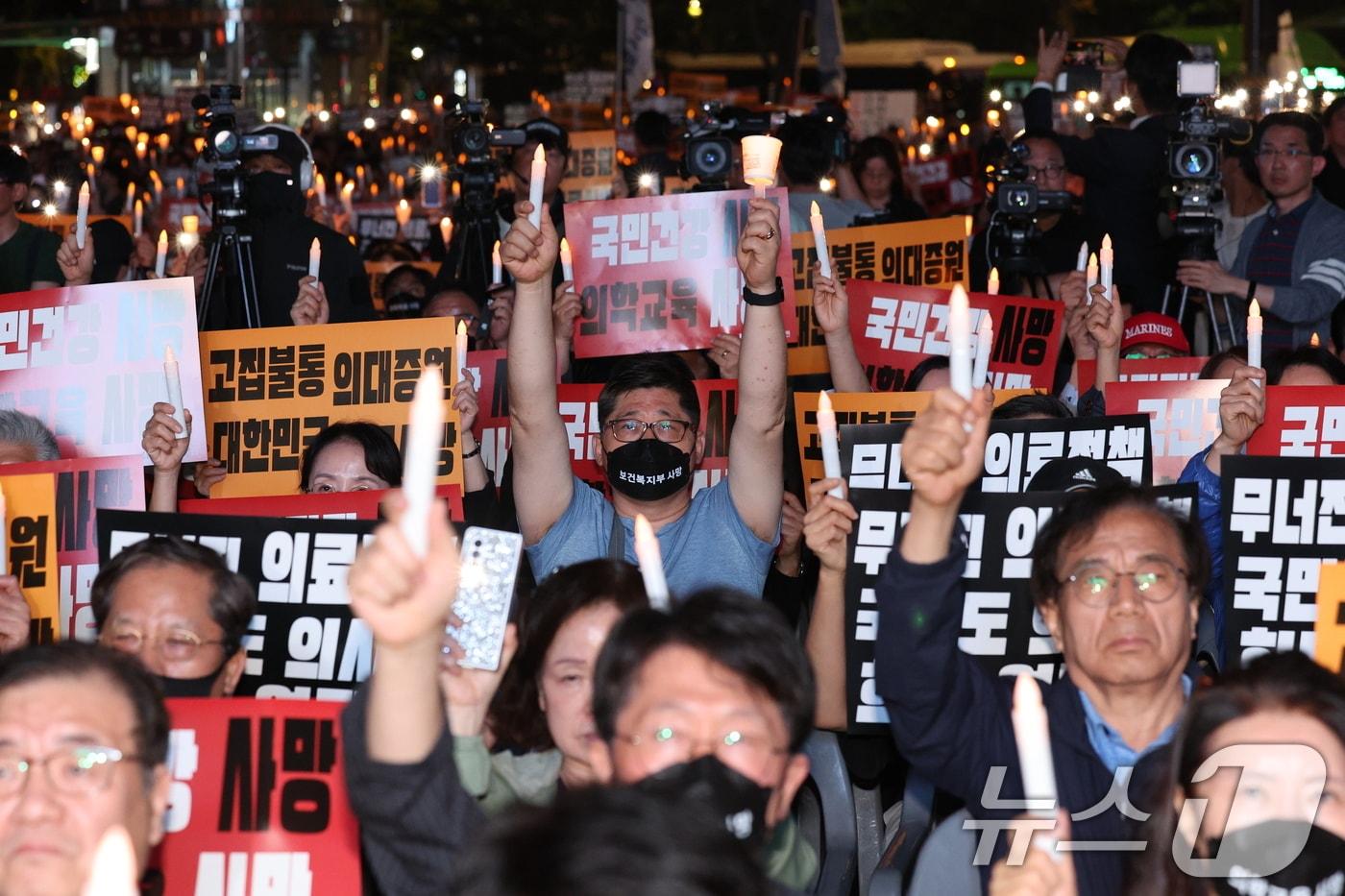 서울 5000명 등 전국서 의대증원 반대 동시다발 집회임현택 의협회장, 파업 가능성에 "모든 수단 강구"30일 오후 서울 덕수궁 대한문 앞에서 의사협회 주최로 열린 대한민국정부 한국 의료 사망선고 촛불집회 참석자들이 촛불을 들고 의대 증원을 규탄하고 있다. 2024.5.30/뉴스1 ⓒ News1 신웅수 기자임현택 대한의사협회 회장이 30일 오후 서울 덕수궁 대한문 앞에서 열린 대한민국정부 한국 의료 사망선고 촛불집회에서 의대 증원 규탄 발언을 하고 있다. 2024.5.30/뉴스1 ⓒ News1 신웅수 기자관련 키워드임현택대한의사협회전공의이탈의협의사파업이기범 기자 '닌텐도 스위치2' 반년 써보니…"스마트폰화된 콘솔"[토요리뷰]"논란 털고 간다"…네이버 탈락한 '국대 AI' 평가 핵심은관련 기사'전공의 집단사직 공모' 전현직 의협 간부들 검찰 송치