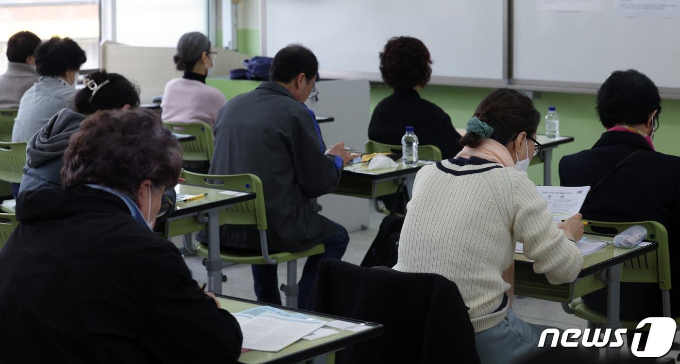 4월 6일 오전 서울 용산구 용강중학교에서 치러진 2024년도 제1회 초등학교 졸업학력 검정고시에서 응시생들이 시험 시작을 기다리고 있다. /뉴스1 ⓒ News1 박정호 기자