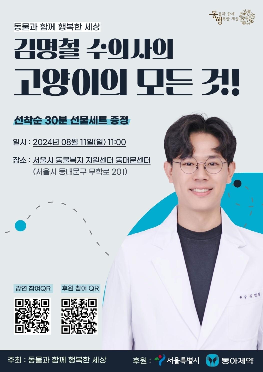 서울동물복지지원센터 동대문에서 진행동물보호단체 '동물과 함께 행복한 세상'은 오는 11일 반려묘 가족들을 위한 특강을 서울동물복지지원센터 동대문에서 진행한다고 밝혔다.(동물과 함께 행복한 세상 제공) ⓒ 뉴스1관련 키워드행사교육고양이반려묘수의사동물보호냥집사한송아 기자 웃음과 눈물, 그리고 기적…올해를 빛낸 동물병원 화제의 영상은"너 때문에 죽는 거야"…던져진 반려견, 다시 소유자에게 돌아갔다관련 기사"외로움 견디게 하고 행복감 주는 반려동물…소중하게 생각해야"VIP동물의료센터, 개원 21주년…"본보기 되는 리더 그룹으로 성장"국경없는수의사회, 라오스 국립대와 함께 광견병 백신 접종 진행"선진 수의피부학, 이제 한국이 주도"…태국 ASVCD서 저력 과시'눈에 넣는 약'으로 구토 유발…고양이 브리모니딘 치료 주목