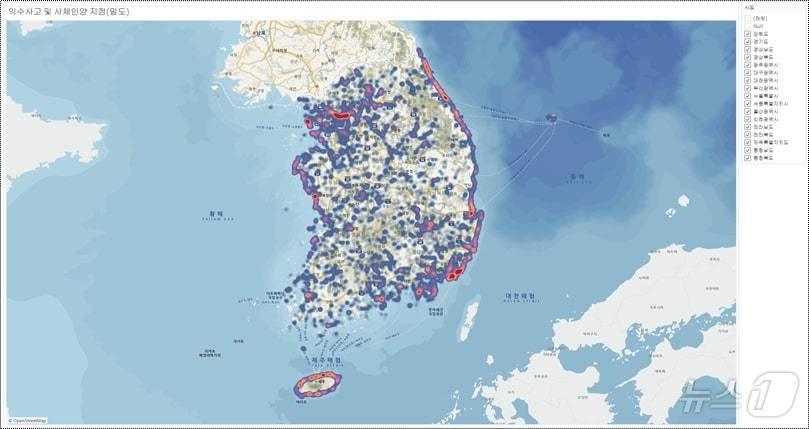 익수 사고 위험지도. (소방청 제공)ⓒ 뉴스1