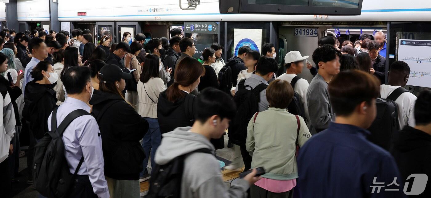 서울 지하철 4호선 서울역 승강장이 출근하는 시민들로 붐비는 모습. ⓒ News1 박지혜 기자
