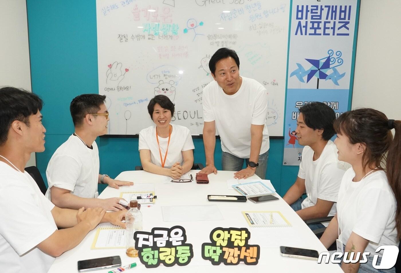 오세훈, 8개 기업·기관과 자립준비청년 네트워크 구축 협약6억1000만 원 규모 'SOS자금' 조성…취업 연계도오세훈 서울시장이 서울 용산 베르디움프렌즈에 개소한 자립준비 청년 전용공간 '영플러스 서울' 시설을 관람하며 청년들과 대화를 나누고 있다. (서울시 제공) 2023.7.6/뉴스1관련 키워드서울시자립준비청년이설 기자 [동정] 오세훈, 고위공직자 대상 청렴 교육 수강전국 집중호우로 대피 3555명 '미귀가'…도로·철도 곳곳 통제관련 기사고려아연, 자립준비청년 지원기관에 1억원 기부성동구, '청년친화도시' 지정…2년간 국비 10억 지원서울광역청년센터, 하나증권 연계 서울청년건강검진지원사업 성료서울시, 가족돌봄청년에 교육비 150만원·자기돌봄비 지원인사처, 고용부·과기부 등 균형인사 우수기관 9곳 선정