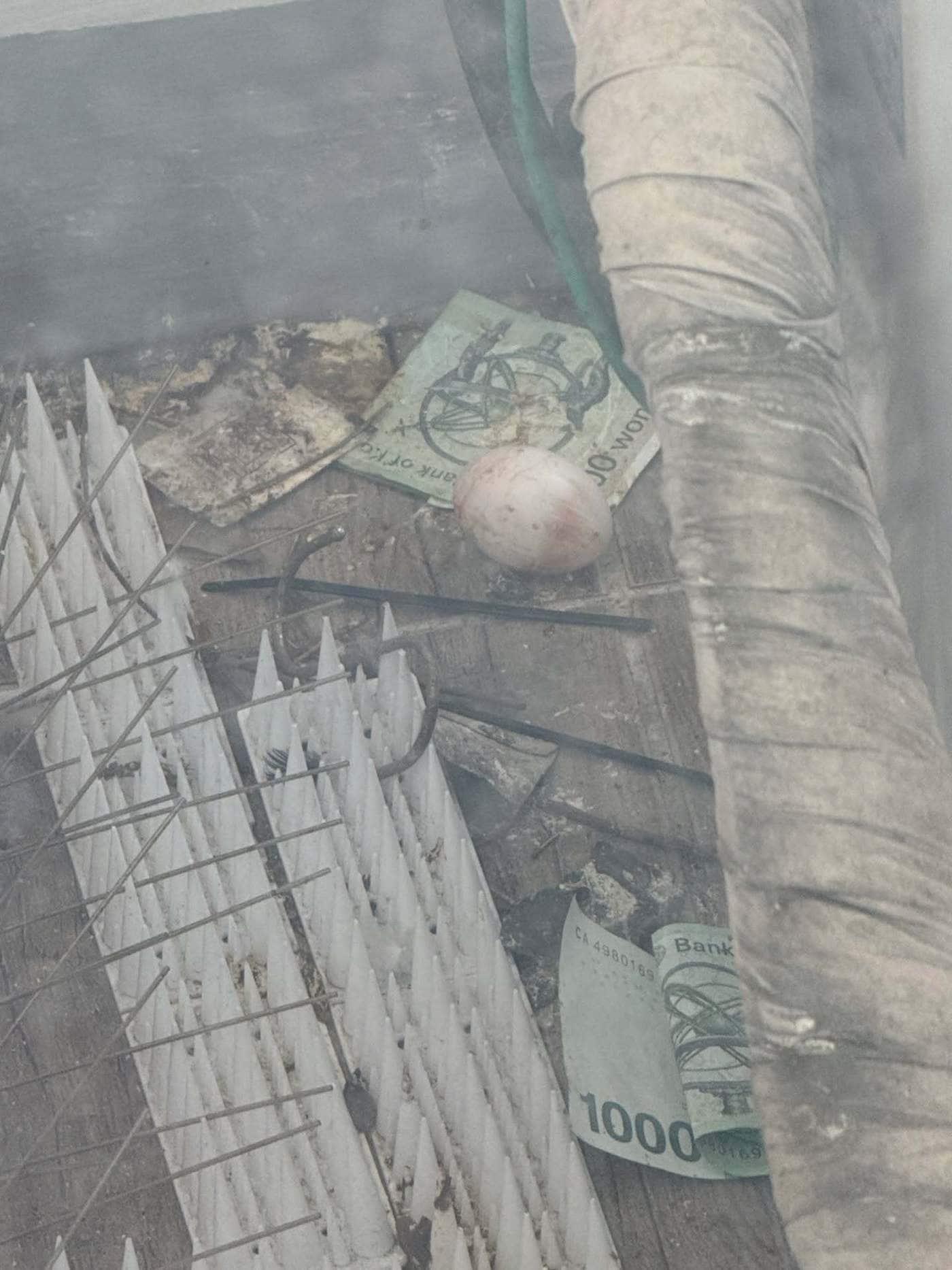 "방세 낸 거니?"…실외기 비둘기 알 옆 만원짜리 지폐 2장 '깜짝'