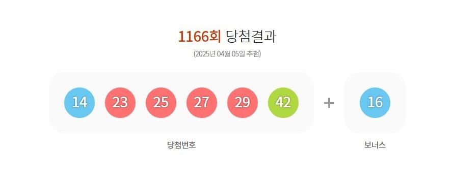 1등 당첨 번호 '14·23·25·27·29·42'…보너스 번호 '16'1166회 로또 1등 당첨 번호 (동행복권 갈무리)관련 키워드로또1등번호동행복권1등정윤미 기자 '744억원 불법대출 금품수수' 기업은행 전·현직 10명 무더기 재판행'대북송금 증언 번복' 안부수 전 협회장 "회유 받은 적 없다"관련 기사1206회 로또 1등 15명 '18억씩'…자동 선택 명당 7곳안산서 로또 1등 나왔다…전국 10곳 당첨자 32억2600만원씩 수령1205회 로또 1등 각 32억씩 10명…자동 9명·수동 1명"7등 아쉬워 또 산 복권이 21억 잭팟"…연금복권 1·2등 동시 당첨제1204회 로또 1등 18명 '16억씩'…자동 선택 '14곳'