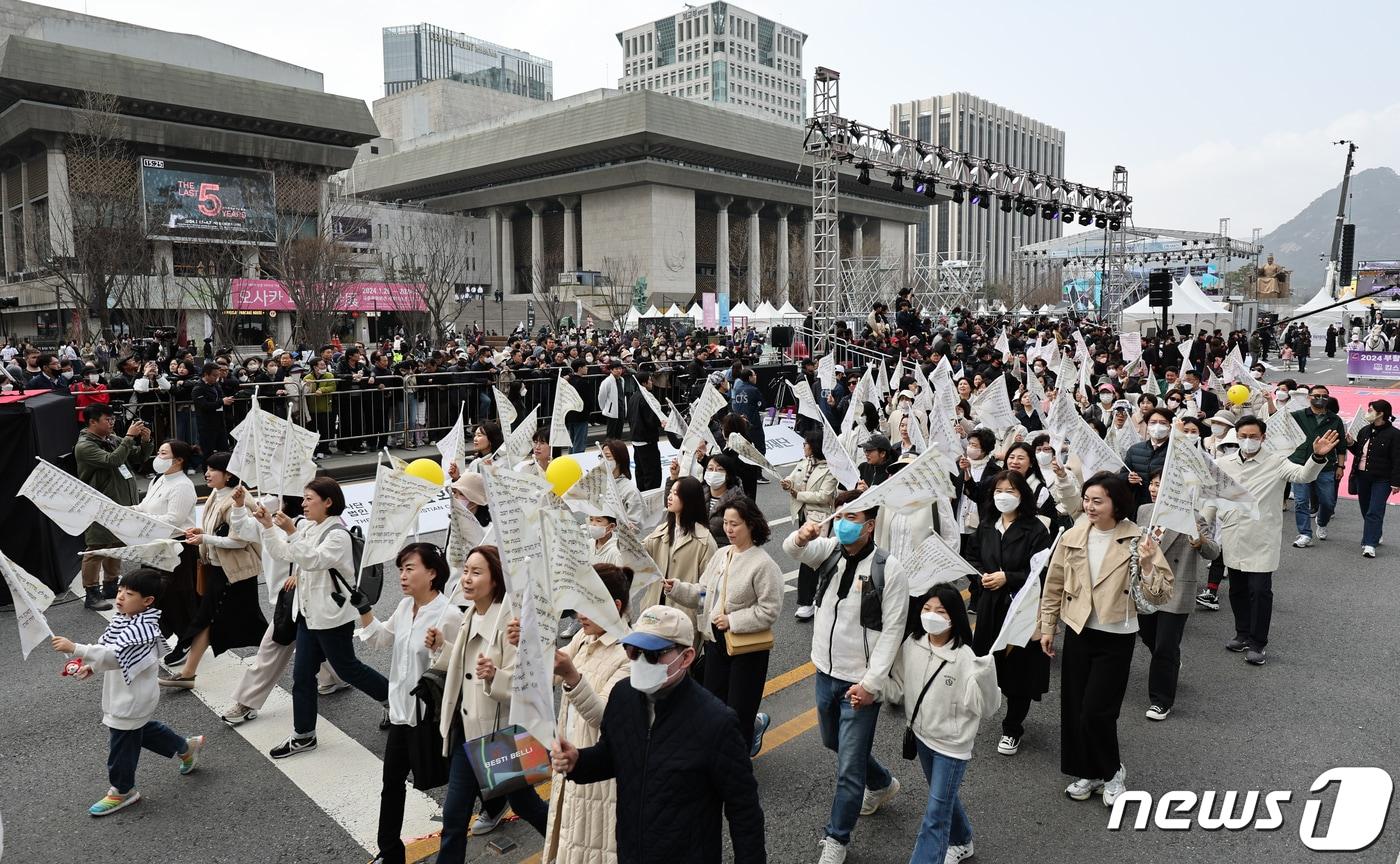 지난해 서울 종로구 광화문광장에서 열린 '2024 부활절 퍼레이드'. 2024.3.30/뉴스1 ⓒ News1 김도우 기자