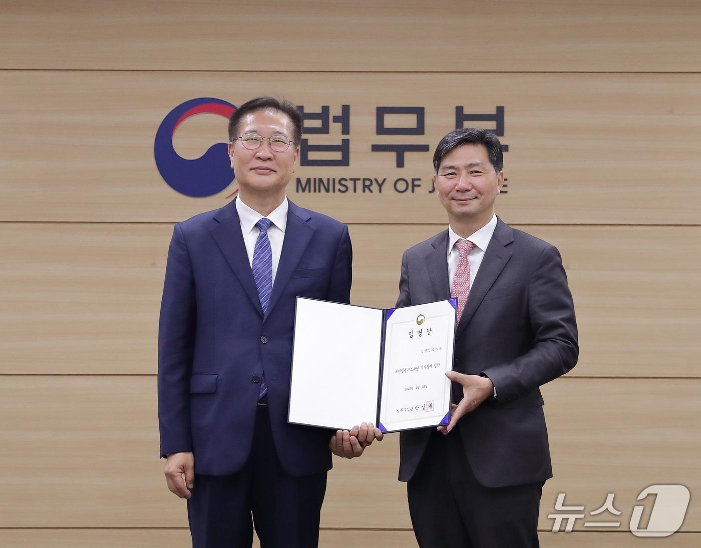 "사회·경제 약자에 대한 법률구조 사업 발전 기여 기대"…임기 3년박성재 법무부 장관(왼쪽)과 대한법률구조공단 이사장에 임명된 김영진 변호사.(법무부 제공).2025.4.18/뉴스1 ⓒ News1관련 키워드법무부대한법률구조공단김영진김기성 기자 '6700억 입찰 담합' 효성중공업·현대일렉트릭 임직원 구속기로법원행정처 "종합특검, 3특검 연장으로 보일 우려 있어"…국회 의견 제출관련 기사이상경 국토부 1차관, 56.6억원 재산신고…9월 공개 대상 현직 3위'알박기' 논란 속 김영진 법률구조공단 이사장 취임…업무공백 지울까