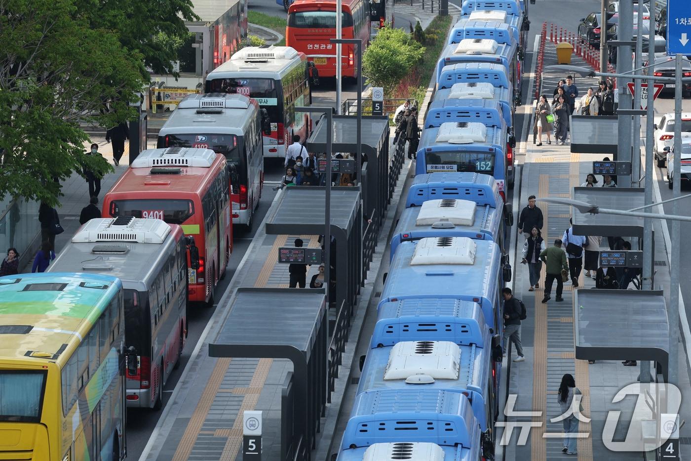 서울시 버스노조가 준법투쟁에 돌입한 30일 오전 서울역 버스환승센터에서 시민들이 버스를 이용해 출근하고 있다. 2025.4.30/뉴스1 ⓒ News1 신웅수 기자