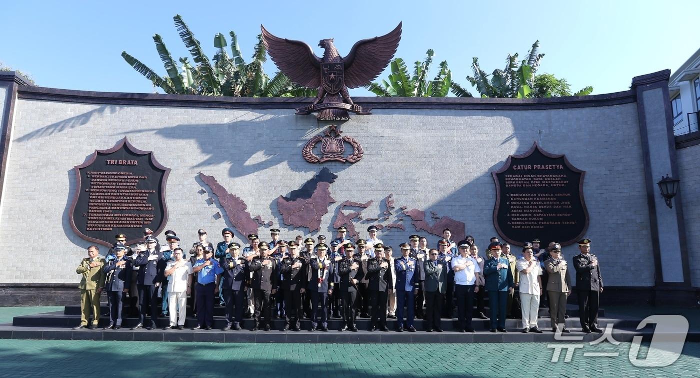 9일 오전(현지시간) 인도네시아 경찰학교에서 열린 아시아경찰교육기관연합 정기총회에서 참석자들이 기념사진을 촬영하고 있다.