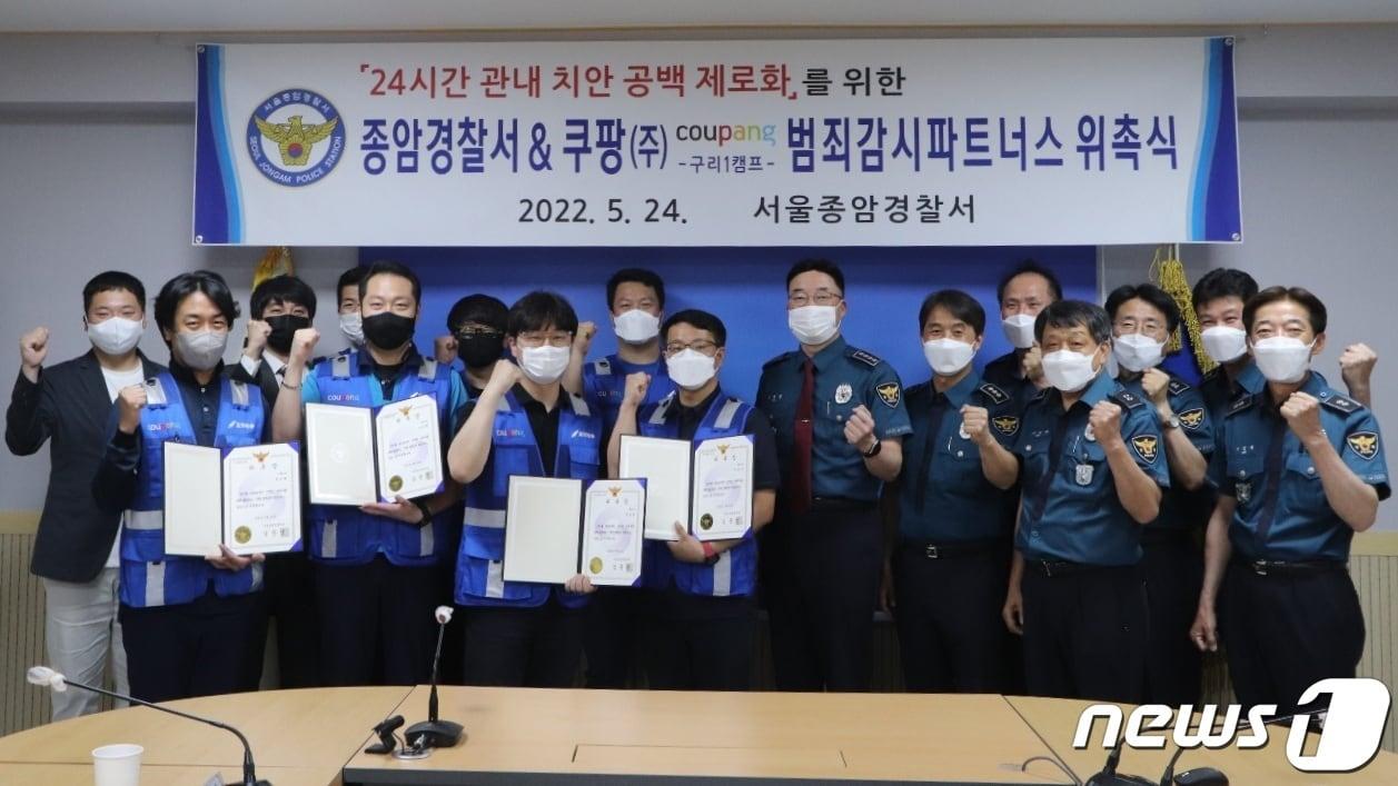 서울종암경찰서와 쿠팡이 24일 '범죄감시 파트너스' 위촉식을 진행했다. (종암서 제공) /2022.05.24 ⓒ 뉴스1관련 키워드서울종암경찰서종암서쿠팡범죄감시파트너스조현기 기자 국힘 "李대통령, 나토를 비토 마라…외교 참사 안 돼"민주 지지율 45% '역대 최고'…'내홍' 국힘 23% 4년만에 최저
