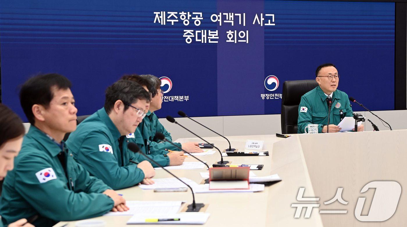 유가족 요청사항 민원 971건 처리, 심리상담 379건 지원유가족 명예훼손 163건 수사…국토부는 사고 원인 조사이한경 행정안전부 재난안전관리본부장이 5일 정부세종청사 1층 중앙재난안전상황실에서 제주항공 여객기 사고 제10차 중앙재난안전대책본부 회의를 주재하고 있다. (행안부 제공) 2024.1.5/뉴스1관련 키워드제주항공중대본이한경무안여객기참사이설 기자 [동정] 오세훈, 고위공직자 대상 청렴 교육 수강전국 집중호우로 대피 3555명 '미귀가'…도로·철도 곳곳 통제관련 기사정부, 여객기 참사 유가족에 국민 성금 31일 이후 지급