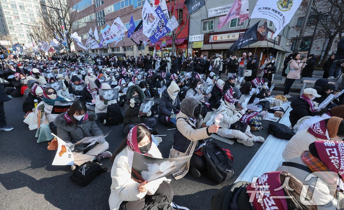 주최 측 추산 5000명 모여…48개 단체 등 연대 서명"동덕여대 민주적 운영 위해 싸우겠다"동덕여대 재학생연합 학생들이 9일 서울 종로구 동덕빌딩 앞에서 ‘민주동덕에 봄은 오는가’라는 주제로 열린 시위 및 연대 공연에서 학내 민주화 촉구하는 구호를 외치고 있다. 2025.2.9/뉴스1 ⓒ News1 허경 기자관련 키워드동덕여대유수연 기자 尹 '체포방해' 1심 징역 5년…특검 "일부 무죄 면밀 검토할 것"(종합2보)尹 '체포방해' 1심 징역 5년…法 "헌법 위배, 반성도 안 해"(종합)관련 기사[부고] 조병무 씨(문학평론가 겸 시인) 별세동덕여대 학칙서 '여성 삭제'…"학생 87.5% 학칙 개정 반대"'연 명장' 리기태, 유럽이 발견한 한국 장인의 예술세계결혼 5년만에 부모될 이시언♥서지승 부부, 2세 성별 공개…'아들이었네'이시언♥서지승 결혼 5년만에 부모된다…"임신 중, 내년 출산 예정"
