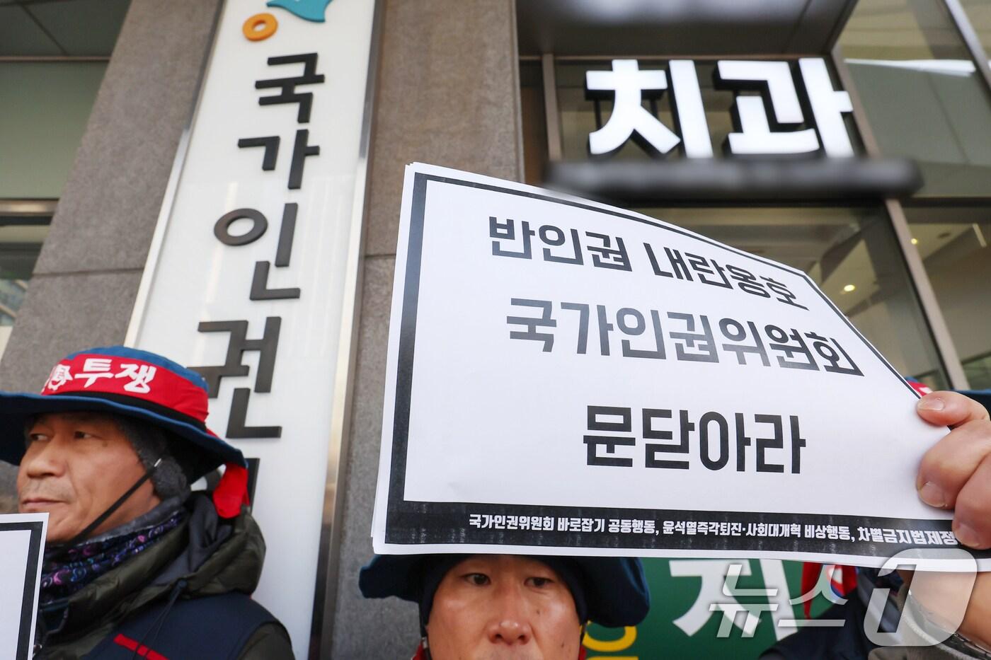 "위헌·위법적인 비상계엄을 옹호하는 의결 철회 및 인권위원장 사퇴 촉고"국가인권위원회 바로잡기 공동행동 관계자들이 11일 오전 서울 중구 국가인권위 앞에서 '12·3 비상계엄 선포에 대한 국가인권위원회 집단진정 기자회견'을 하고 있다. 2025.2.11/뉴스1 ⓒ News1 민경석 기자관련 키워드인권위국가인권위원회윤석열방어권尹비상계엄선포이기범 기자 '닌텐도 스위치2' 반년 써보니…"스마트폰화된 콘솔"[토요리뷰]"논란 털고 간다"…네이버 탈락한 '국대 AI' 평가 핵심은유수연 기자 尹 '체포방해' 1심 징역 5년…특검 "일부 무죄 면밀 검토할 것"(종합2보)尹 '체포방해' 1심 징역 5년…法 "헌법 위배, 반성도 안 해"(종합)관련 기사경찰 특수본, 안창호 인권위원장 내란 선동 의혹 고발인 조사남규선 前인권위원, 경찰 출석…김용원·이충상 직무유기 혐의 조사경찰, 6일 '안창호 인권위원장 내란선동 의혹' 고발인 조사경찰, '해병특검 인계' 인권위 정조준…김용원·이충상 직무유기 수사경찰 '尹 방어권' 인권위 수사 본격화…내란 선전·선동 혐의