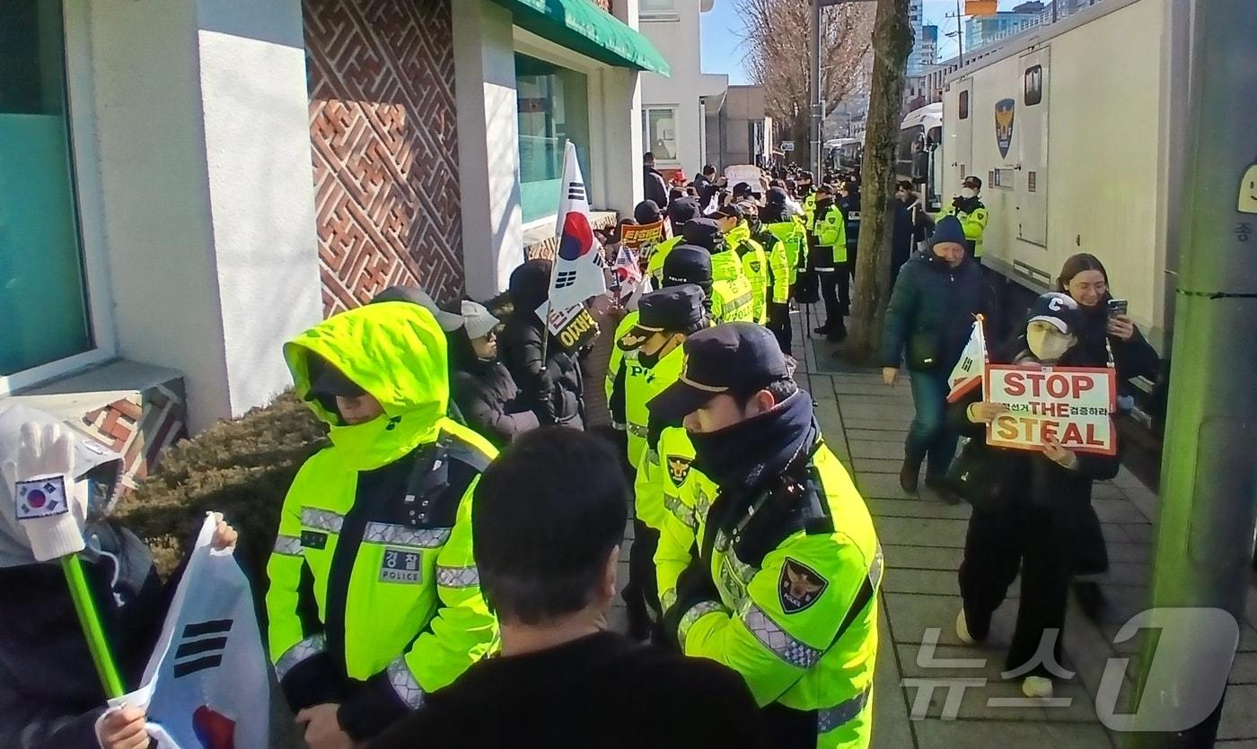 1인 시위 아닌 단체 시위로 판단…"경찰이 깡패냐" 반발일일이 자진 해산 요구…경력 배치 늘고 근접 채증 시작윤석열 대통령 탄핵 심판 8차 변론기일이 열리는 13일 오후 서울 종로구 헌법재판소 건너편에서 경찰이 시위하는 윤 대통령 지지자들에게 자진 해산을 요구하고 있다. / 뉴스1 이강 기자관련 키워드헌법재판소해산명령박혜연 기자 "백 사는데 집 주소·SNS까지"…에르메스 '고객 뒷조사' 논란마뗑킴부터 무신사·LF까지…패션업계 협업 경쟁 열기이강 기자 출국 못해도 면세품 회수 안 해…현금영수증 의무 업종도 확대강남로또 당첨 때까지 '장남 위장미혼'…이혜훈 상습 부정청약관련 기사[2026 터닝포인트]변화하는 세계 질서를 민주주의가 따라잡을 수 있을까?장동혁 "30일 본회의서 통일교 특검법 처리해야…안되면 특단 조치"[전문] 정청래 "국힘, 내란의 늪에서 빠져나오길 간곡히 제안"'또 한번의 실각' 태국 정치를 읽는 법[최종일의 월드 뷰]민주 "尹 부부 마주할 곳 법의 심판뿐…'망언' 김문수 고발 검토"