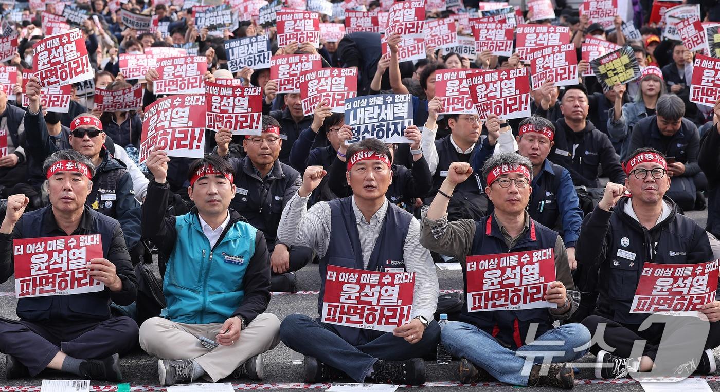 광화문 8000명 집결…"피청구인 윤석열 파면한다" 구호"헌재, 주권자 명령 배반"…시민 총파업대회 이어서 진행하루 총파업에 돌입한 전국민주노동조합총연맹 조합원들이 27일 서울 광화문광장에서 윤석열 대통령에 대한 헌법재판소의 탄핵심판 선고일 지정을 촉구하고 있다. 2025.3.27/뉴스1 ⓒ News1 박지혜 기자하루 총파업에 돌입한 전국민주노동조합총연맹 조합원들이 27일 서울 광화문광장에서 윤석열 대통령에 대한 헌법재판소의 탄핵심판 선고일 지정을 촉구하고 있다. 2025.3.27/뉴스1 ⓒ News1 박지혜 기자관련 키워드민주노총탄핵심판총파업박혜연 기자 "백 사는데 집 주소·SNS까지"…에르메스 '고객 뒷조사' 논란마뗑킴부터 무신사·LF까지…패션업계 협업 경쟁 열기권진영 기자 '천호동 흉기살인' 60대男, 첫 재판서 "보복 목적 아니었다"구룡마을 화재 8시간 28분만에 '완진'…이재민 약 190명 발생(종합4보)관련 기사尹 탄핵 찬반, 오늘밤 헌재·광화문 찍고…내일 한남동 집결[尹탄핵심판]서울 도심 곳곳 尹 탄핵 찬반 집회·행진…교통 혼잡 예상'尹 탄핵 촉구' 민주노총 총파업 예고에…김문수 "정치적 총파업 안 돼"민주노총 전직 위원장들 "尹 파면 촉구 총파업 지지"경제계, 민주노총 '尹 파면' 총파업 "불법 정치파업" 우려