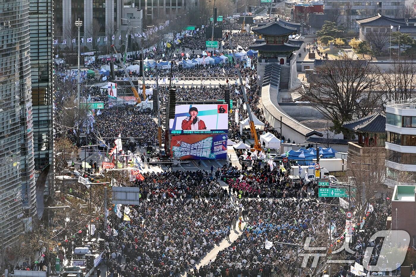 29일 오후 서울 종로구 광화문 네거리 일대 도로가 윤석열 대통령 지지자들과 자유통일당 등 보수단체 회원들의 집회로 인해 교통 통제가 이뤄지고 있다. 2025.3.29/뉴스1 ⓒ News1 민경석 기자관련 키워드헌법재판소윤석열 탄핵 심판 선고꽃샘추위탄핵 찬반 집회자유통일당비상행동신윤하 기자 새해 퇴근길 '시청역 역주행' 악몽…귀금속거리 화재까지 종로 일대 혼란70대 운전자가 몰던 택시 종각역 인근서 '쾅'…행인 덮쳐 1명 사망관련 기사"헌재 날리는 성령 바람 불어온다"…꽃샘추위에도 또 모인 尹 지지자