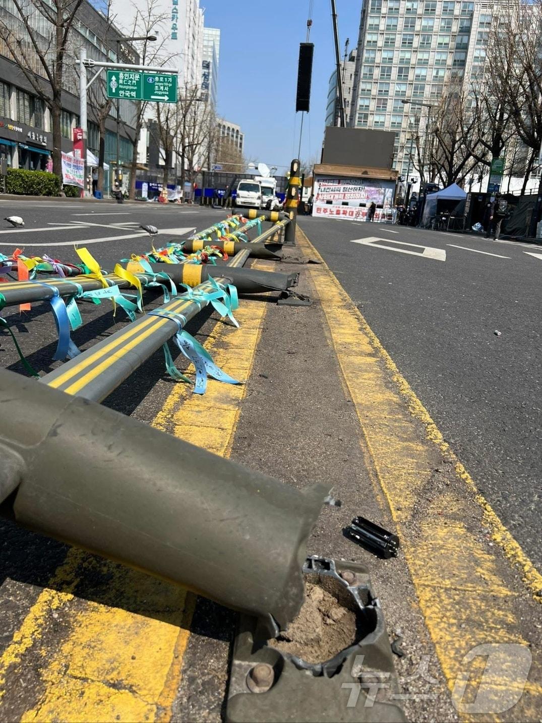 공용물건손상 혐의…경찰 "헌재 앞 불법행위 신속·엄정 수사"3일 서울시 종로구 안국빌딩 앞 도로 중앙분리대가 쓰러져 있다. 2025.04.03/(출처 : 임태훈 군인권센터 소장 X)관련 키워드탄핵심판중앙분리대공용물건손상헌재권진영 기자 최저 '-8도' 추위에 꽁꽁…"빙판길 조심하세요"[오늘날씨]아이폰 비번 침묵한 강선우·美 일정 경찰에 비공개한 김경김종훈 기자 '호카 총판사 폭행' 원하청 구조 주목…직장인 87.1% "법 개정해야"일요일 남부 중심 눈…최저 -15도 '맹추위'[오늘날씨]