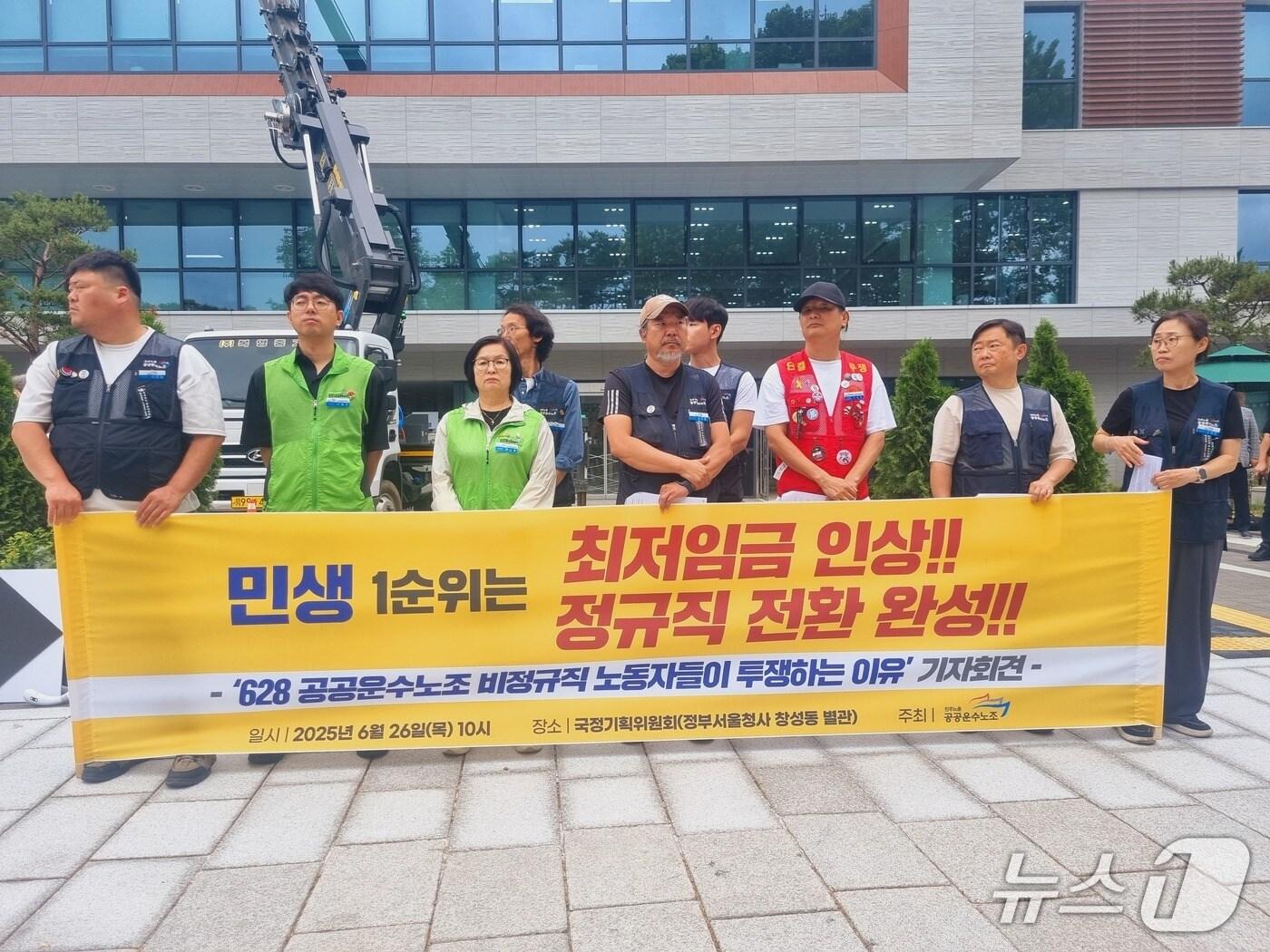 공공운수노조, 정규직 전환 등 요구…회견 중 자영업자 단체와 마찰참여연대·민변, AI 6대 정책 요구안 제출…건설노조 총궐기 예정전국민주노동조합총연맹(민주노총) 공공운수노조가 26일 오전 서울 종로구 창성동 정부서울청사 별관 앞에서 기자회견을 열고 있는 모습. 2025.6.26/뉴스1 ⓒ News1 박혜연 기자관련 키워드공공운수노조민주노총최저임금자영업자신윤하 기자 초등생도 자살 고민…기업이 '자살예방 프로젝트' 나섰다'청와대 앞 집회 금지' 반기는 주민들…시민단체는 "위헌"박혜연 기자 "탈팡족은 또 가입하라고?"…쿠팡 '쪼개기' 구매이용권 보상안 '뭇매'[인사] 코스맥스그룹관련 기사'쉬는 제도'라는 오해…상병수당 설계는 복귀까지 고려했다국회 앞 모인 화물차 노동자들…"일몰 없는 안전운임제 도입하라""李정부, 민생 저버려" 2.9% 최저임금 인상률에 노동계 반발시민단체들, 국정기획위 출범에 "노동 존중 행동으로 보여야…장애인도 포함"민주노총 "특수고용 노동자 근로기준법 전면 적용"…대선 요구안 발표