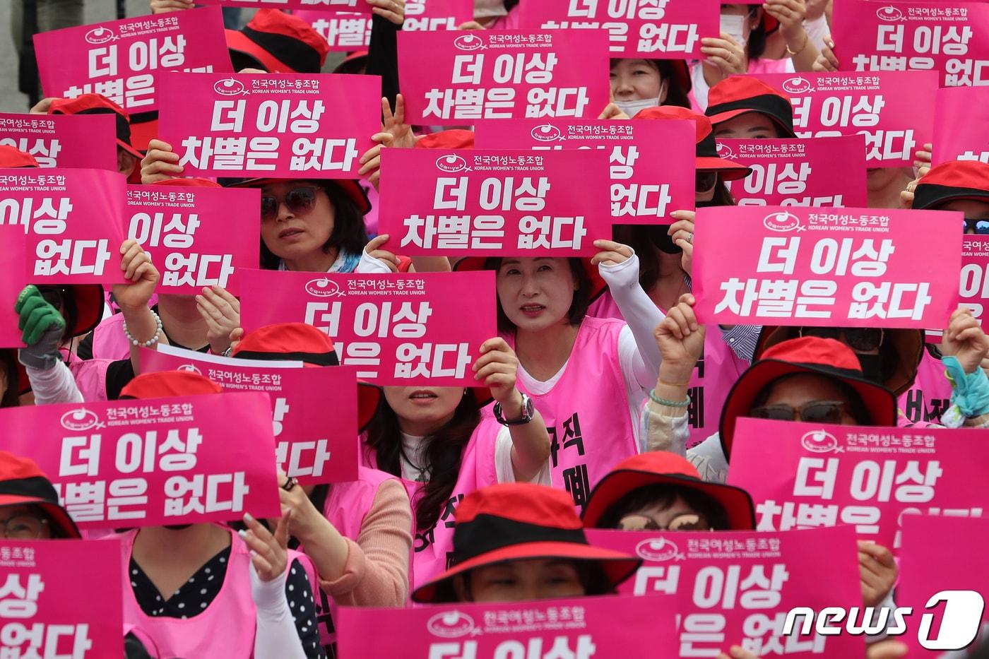 전국여성노동조합의 여성 노동자 차별 철폐 촉구 시위. 2019.7.3/뉴스1