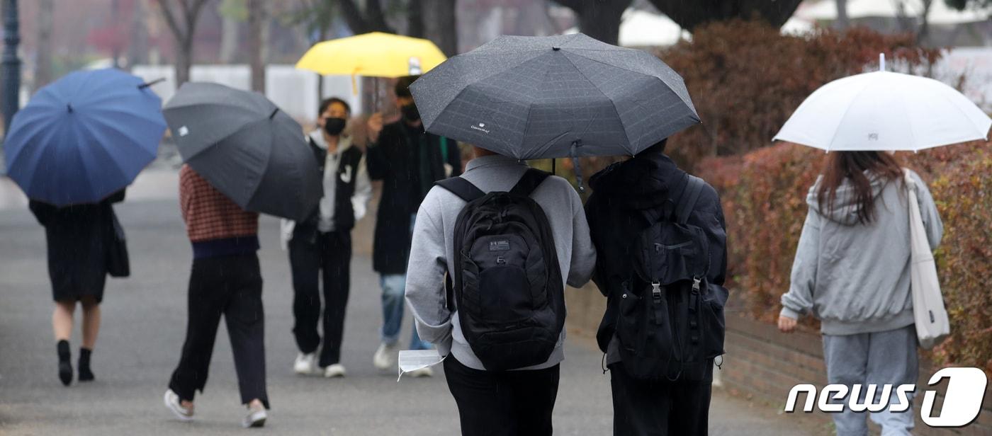 비가 내리고 있는 22일 전북 전주시 전북대학교에서 우산을 쓴 학생들이 발걸음을 옮기고 있다. 2022.11.22/뉴스1 ⓒ News1 유경석 기자