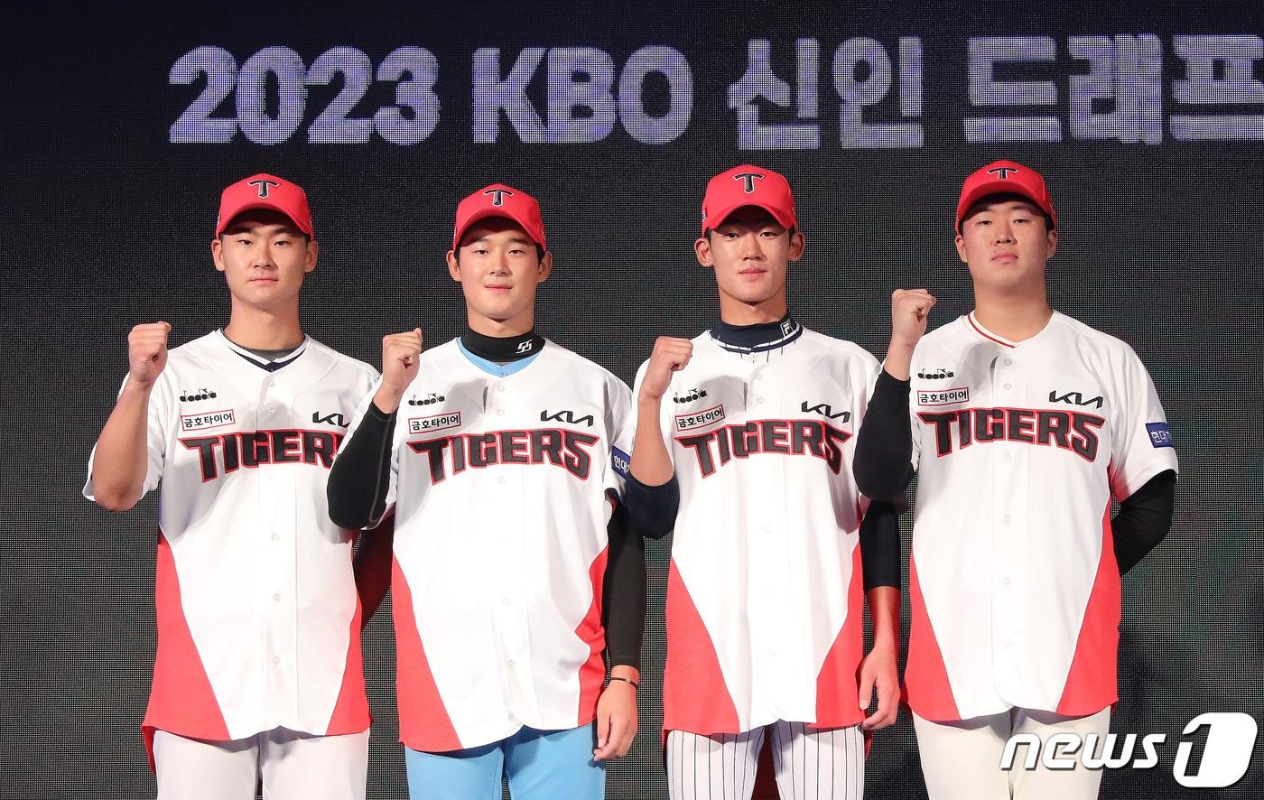 15일 오후 서울 중구 웨스틴조선호텔 그랜드볼룸에서 열린 2023 KBO 신인 드래프트에서 KIA 타이거즈에 지명된 선수들이 기념촬영을 하고 있다. 2022.9.15/뉴스1 ⓒ News1 임세영 기자