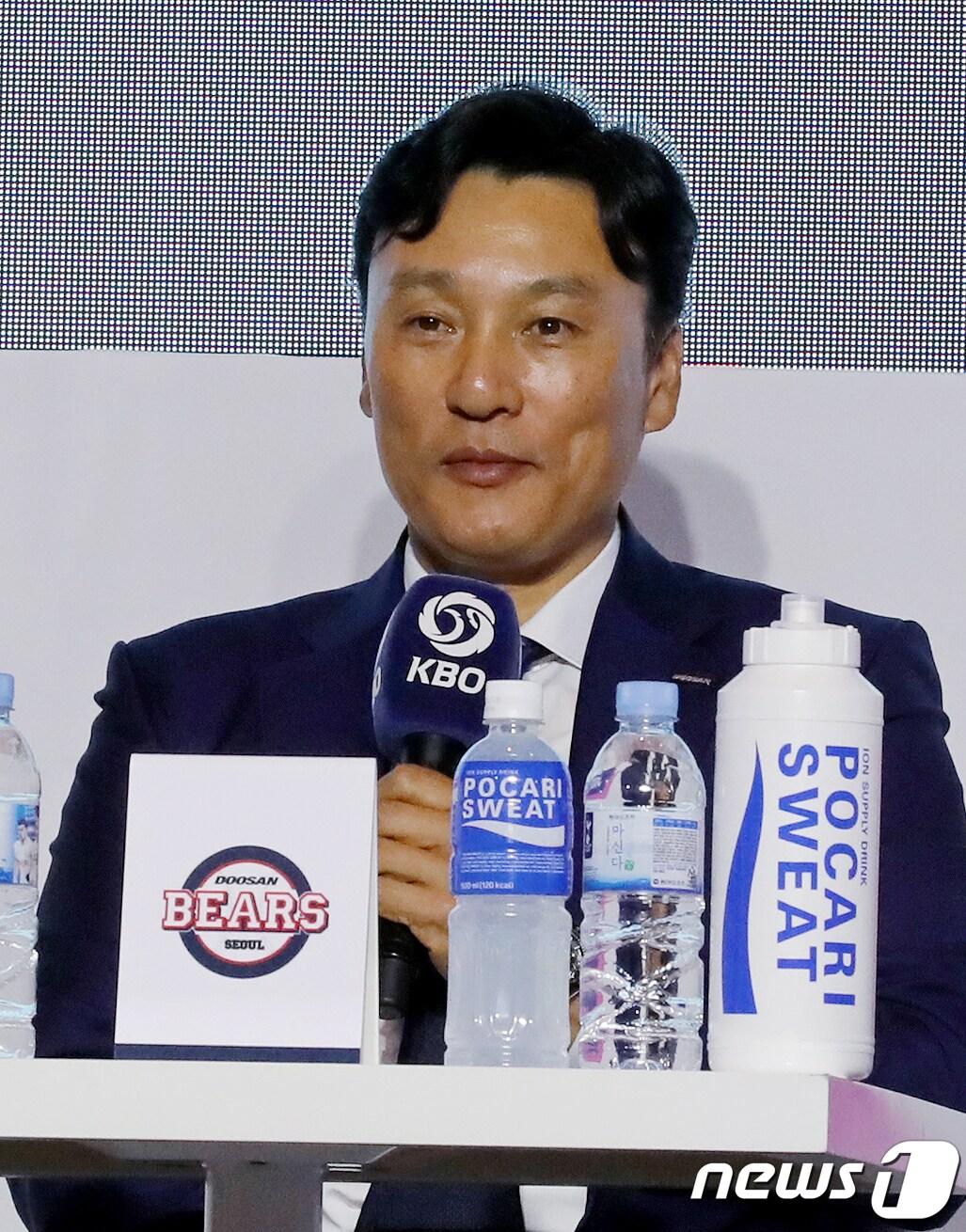 이승엽 두산 베어스 감독이 30일 서울 용산구 그랜드 하얏트 서울 호텔에서 열린 신한은행 SOL 2023 KBO 미디어데이에서 시즌에 임하는 각오를 밝히고 있다. 신한은행 SOL 2023 KBO 프로야구는 오는 4월 1일 개막한다. 2023.3.30/뉴스1 ⓒ News1 장수영 기자
