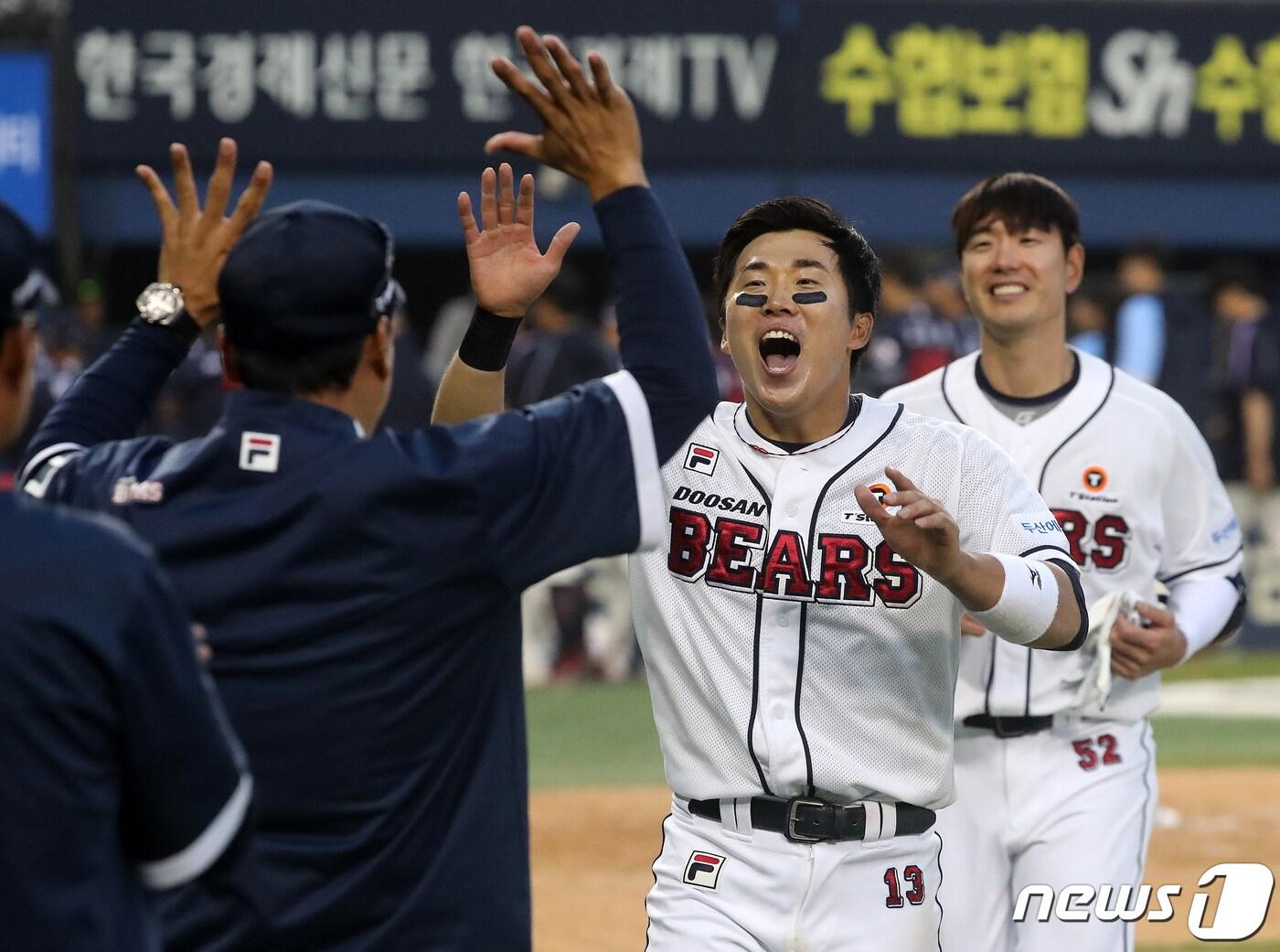 '강백호·로하스 맹타' KT, LG에 11-6 대승윤석열 대통령, 대구 NC-삼성전 시구1일 오후 서울 송파구 잠실야구장에서 열린 2023 신한 SOL KBO리그 롯데 자이언츠와 두산 베어스의 개막 경기, 연장 11회 접전 끝에 12대10 승리를 거둔 두산 허경민이 이승엽 감독과 하이파이브를 하고 있다. 2023.4.1/뉴스1 ⓒ News1 김진환 기자1일 오후 서울 송파구 잠실야구장에서 열린 2023 신한 SOL KBO리그 롯데 자이언츠와 두산 베어스의 개막 경기, 두산 이승엽 감독이 경기를 지켜보고 있다. 2023.4.1/뉴스1 ⓒ News1 김진환 기자1일 오후 서울 송파구 잠실야구장에서 열린 2023 신한 SOL KBO리그 롯데 자이언츠와 두산 베어스의 개막 경기, 두산 로하스가 연장 11회말 무사 1,3루에서 역전 끝내기 스리런 홈런을 친 후 환호하고 있다. 2023.4.1/뉴스1 ⓒ News1 김진환 기자1일 KIA와의 개막전에서 승리투수가 된 김광현. ⓒ News1 문대현 기자KT 위즈 강백호가 1일 경기 수원 케이티위즈파크에서 열린 2023 신한은행 SOL KBO리그 LG 트윈스전에서 3회말 솔로홈런을 친 뒤 그라운드를 돌고 있다. (KT 위즈 제공)키움 히어로즈 이형종이 1일 서울 고척스카이돔에서 열린 2023 신한은행 SOL KBO리그 한화 이글스전에서 10회말 끝내기 안타를 친 후 기뻐하고 있다.(키움 히어로즈 제공)윤석열 대통령이 1일 오후 대구 삼성라이온즈파크에서 열린 프로야구 '신한은행 SOL 2023 KBO리그' NC 다이노스와 삼성 라이온즈의 시즌 개막전에서 시구하고 있다. 2023.4.1/뉴스1 ⓒ News1 공정식 기자관련 키워드현장취재프로야구 개막전두산이승엽김광현이상철 기자 NFL 최장수 감독 톰린, 19년 만에 피츠버그 지휘봉 내려놓는다'킹' 르브론, 31득점 폭발 3연패 끊어…트리플더블 불발 아쉬워문대현 기자 [동행취재]K-바이오, 둘째 날도 '잭폿'은 없었다…"씨 뿌리고 열매 기다려야"'서진석 등판' 셀트리온, JPM서 '신약' 입지…ADC·비만치료제 등 속도[2026JP모건 콘퍼런스]관련 기사'부상 병동' 두산, 이승엽 감독의 한숨…"하늘이 시련을 주신다"