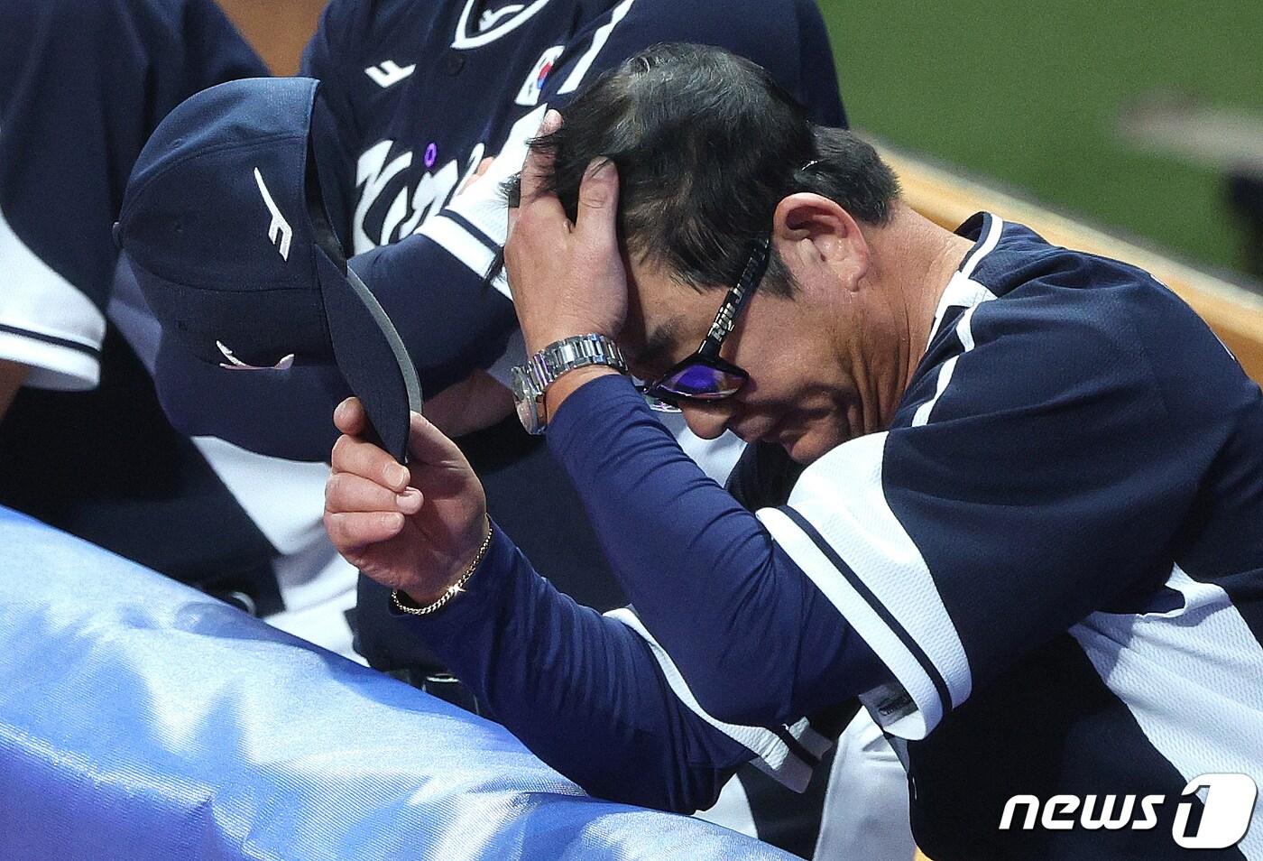 2일 중국 항저우 인근 사오싱 야구 스포츠 문화센터에서 열린 2022 항저우 아시안게임 야구 본선 B조 2차전 대한민국과 대만의 경기에서 류중일 감독이 땀을 닦고 있다. 이날 대한민국 대표팀은 0대 4로 대만에 패했다. 2023.10.2/뉴스1 ⓒ News1 신웅수 기자