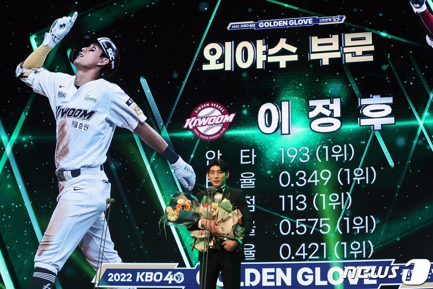 5년 연속 수상한 이정후, 부상 여파로 후보 제외외야수 후보 '2관왕' 홍창기 포함 총 20명이정후(키움)이 9일 오후 서울 강남구 코엑스에서 열린 2022 신한은행 SOL KBO 골든글러브 시상식에서 외야수 부문 수상소감을 밝히고 있다. 2022.12.9/뉴스1 ⓒ News1 박세연 기자11일 오후 경기도 수원시 장안구 수원KT위즈파크에서 열린 '2023 신한은행 SOL KBO 포스트시즌' 한국시리즈 4차전 kt 위즈와 LG 트윈스의 경기, LG 홍창기가 5회초 1사 2루에서 적시타를 치고 있다. 2023.11.11/뉴스1 ⓒ News1 김진환 기자관련 키워드골든글러브외야수이정후홍창기이상철 기자 더더욱 강해진 '스타 군단' 다저스…김혜성, 주전 경쟁 가시밭길'심판 배정 문제' WKBL, 경기 지연 사과…"재정위 개최, 후속 조치"관련 기사샌디에이고 단장 "일단 송성문 WBC 출전 지지…조만간 결정"송성문 이적으로 돈·명성 얻은 키움…내년 시즌 꼴찌 탈출 '암울'[기자의 눈]마이너行 김혜성에게…"8년 전 기억하니, 도전은 지금부터야"'리드오프·포수·예비FA'…KT 강백호, 비상(飛上) 준비 끝