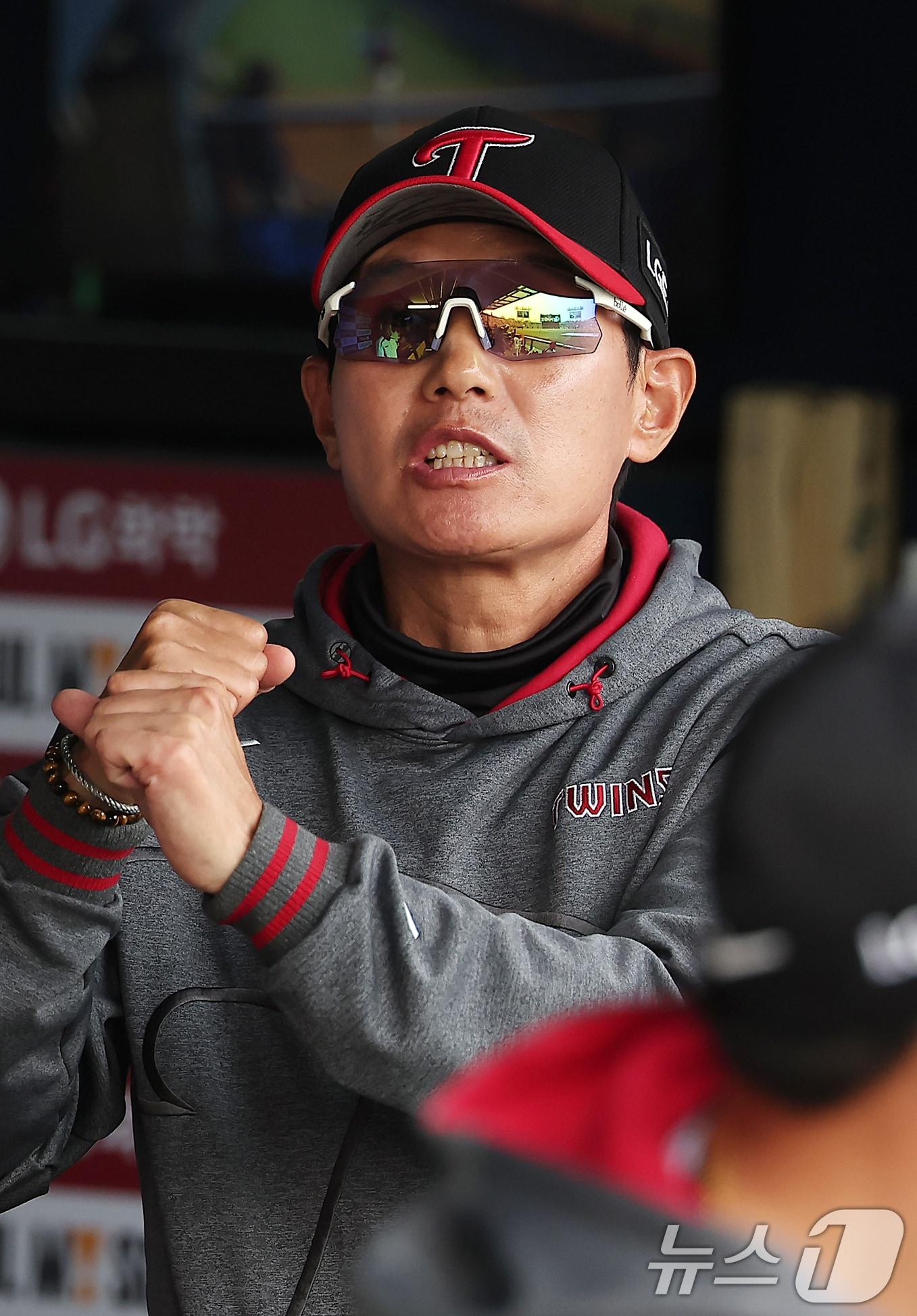 23일 서울 송파구 잠실야구장에서 열린 '2025 신한 SOL 뱅크 KBO리그' 롯데 자이언츠와 LG 트윈스의 경기, LG 염경엽 감독이 8회말 2사 1,2루에서 구본혁의 2타점 적시 3루타가 나온 뒤 대타를 지시하고 있다. 2025.3.23/뉴스1 ⓒ News1 김진환 기자