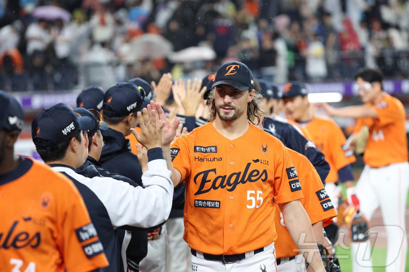 23일 대전 한화생명볼파크에서 열린 '2025 신한 SOL 뱅크 KBO리그' 프로야구 한화 이글스와 롯데 자이언츠 경기에서 한화가 승리하며 와이스 등 선수들이 기뻐하고 있다. 2025.5.23/뉴스1 ⓒ News1 김기남 기자