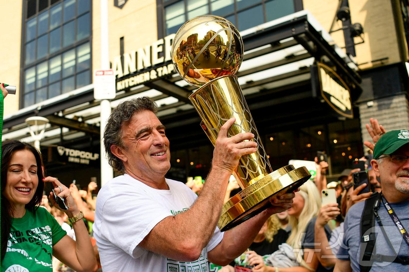 NBA 우승컵을 든 보스턴 셀틱스 구단주 윅 그로스벡. ⓒ AFP=뉴스1관련 키워드NBA보스턴 셀틱스매각이상철 기자 NBA 골든스테이트, 브런슨 빠진 뉴욕 완파…커리 27점 활약프로야구 LG, 오키나와 전지훈련 참관단 모집관련 기사'농구 명가' LA 레이커스, 100억 달러에 매각…새 주인은 다저스 구단주NBA 명문 보스턴 팔린다…美 프로스포츠 최고가 '9조원'에 매각