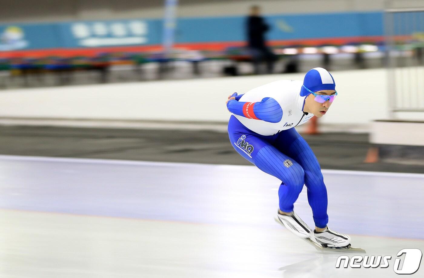 28일 오후 서울 노원구 태릉국제스케이트장에서 열린 스피드스케이팅 제49회 전국남녀 스프린트 대회 겸 제77회 전국남녀 종합 선수권대회 남자 10000M 결승에서 이승훈(IHQ)이 역주하고 있다. 2022.12.28/뉴스1 ⓒ News1 구윤성 기자