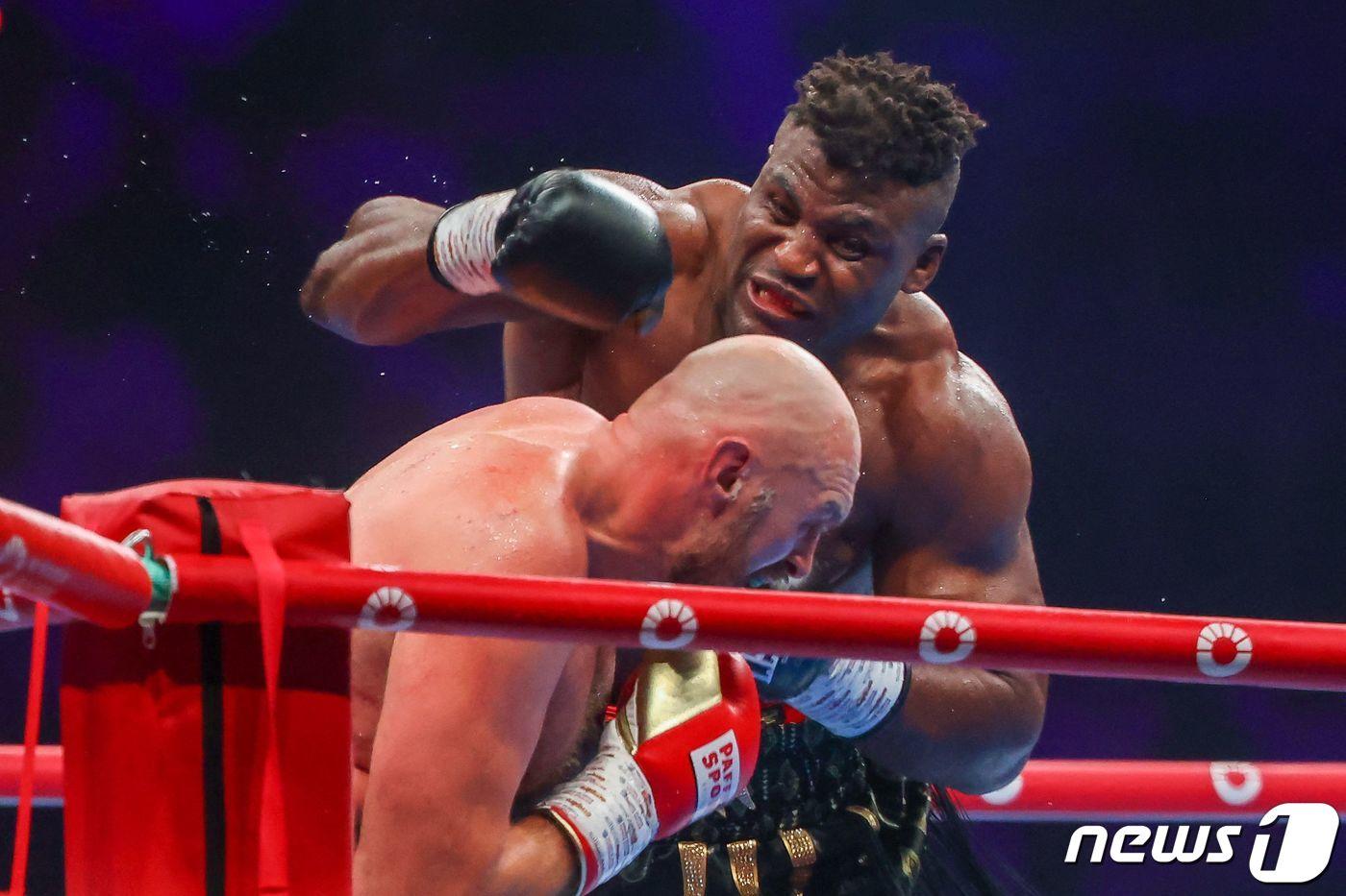 프란시스 은가누(오른쪽)가 29일(한국시간) 열린 타이슨 퓨리와의 경기에서 3라운드 다운을 성공시킨 뒤 세리머니를 하고 있다. ⓒ AFP=뉴스1관련 키워드은가누퓨리권혁준 기자 '불곰' 이승택, 소니오픈서 PGA투어 데뷔전…16일 하와이서 티오프여자 컬링 대표팀, '올림픽 전초전' 3위…올림픽 메달 더 가까이