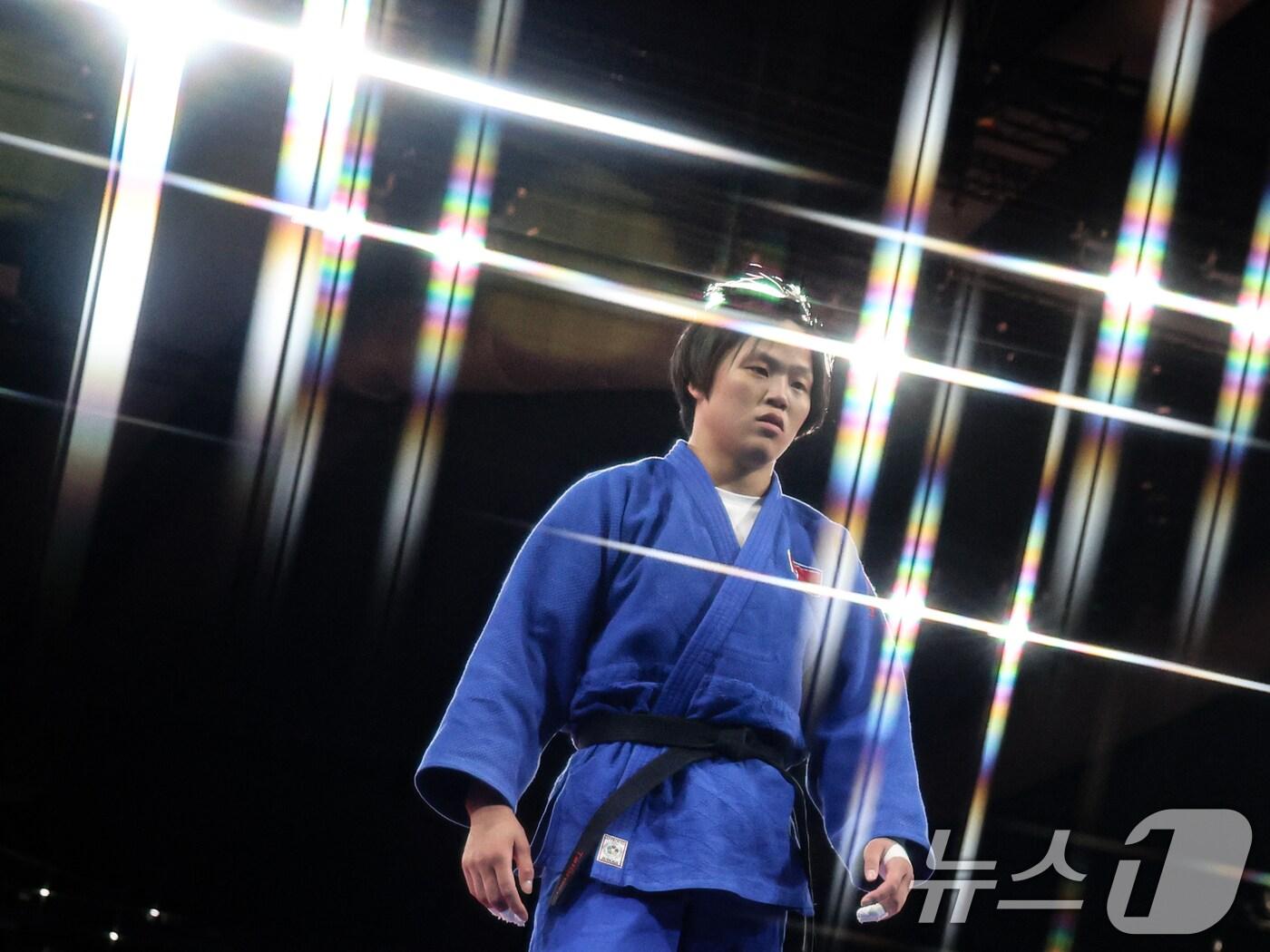 북한 유도대표팀 문성희 선수가 31일 오후 (한국시간) 프랑스 파리 샹 드 마르스 아레나에서 열린 2024 파리올림픽 유도 남자 -70kg 토너먼트 32강 우즈베키스탄의 굴노자 마트니야조바 선수와의 경기에서 패배한 후 경기장을 나서고 있다. 2024.7.31/뉴스1 ⓒ News1 이동해 기자