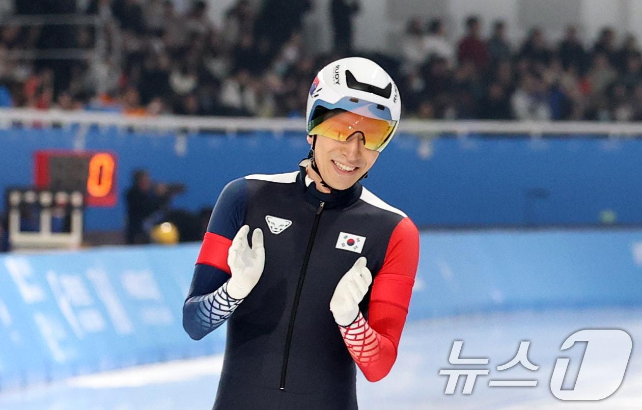 11일(현지시간) 중국 헤이룽장성 하얼빈 스피드 스케이트 오벌에서 열린 하얼빈 동계아시안게임 스피드 스케이팅 남자 팀추월에서 은메달을 확보한 이승훈이 미소 짓고 있다. 이승훈은 동계 아시안게임에서만 총 9개의 메달을 획득, 역대 한국 선수 최다 메달리스트로 우뚝 섰다. 2025.2.11/뉴스1 ⓒ News1 이승배 기자