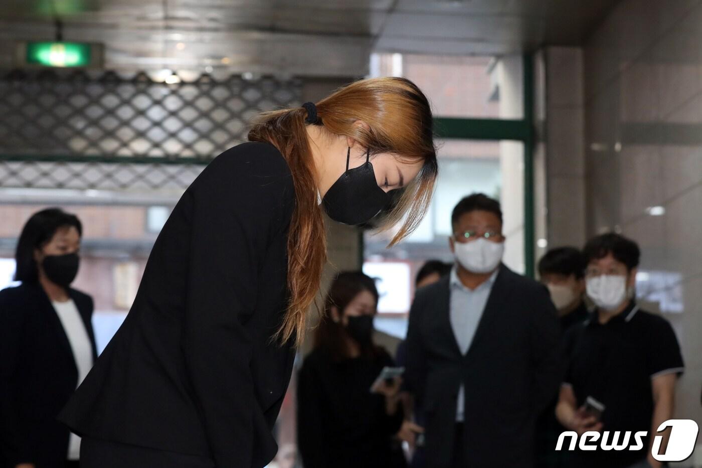 프로골퍼 윤이나가 20일 오전 서울 강남구 한국여자프로골프협회(KLPGA) 사무국에서 열린 상벌분과위원회에 출석 전 인사를 하고 있다. 이날 KLPGA는 지난 6월 16일 열린 한국여자오픈 1라운드에서 경기 도중 자신의 공이 아닌 다른 공으로 경기를 진행한 뒤, 이를 인지하고도 한 달 넘게 사실을 숨겨 논란을 일으킨 윤이나에 대한 상벌위원회를 진행한다. 2022.9.20/뉴스1 ⓒ News1 황기선 기자