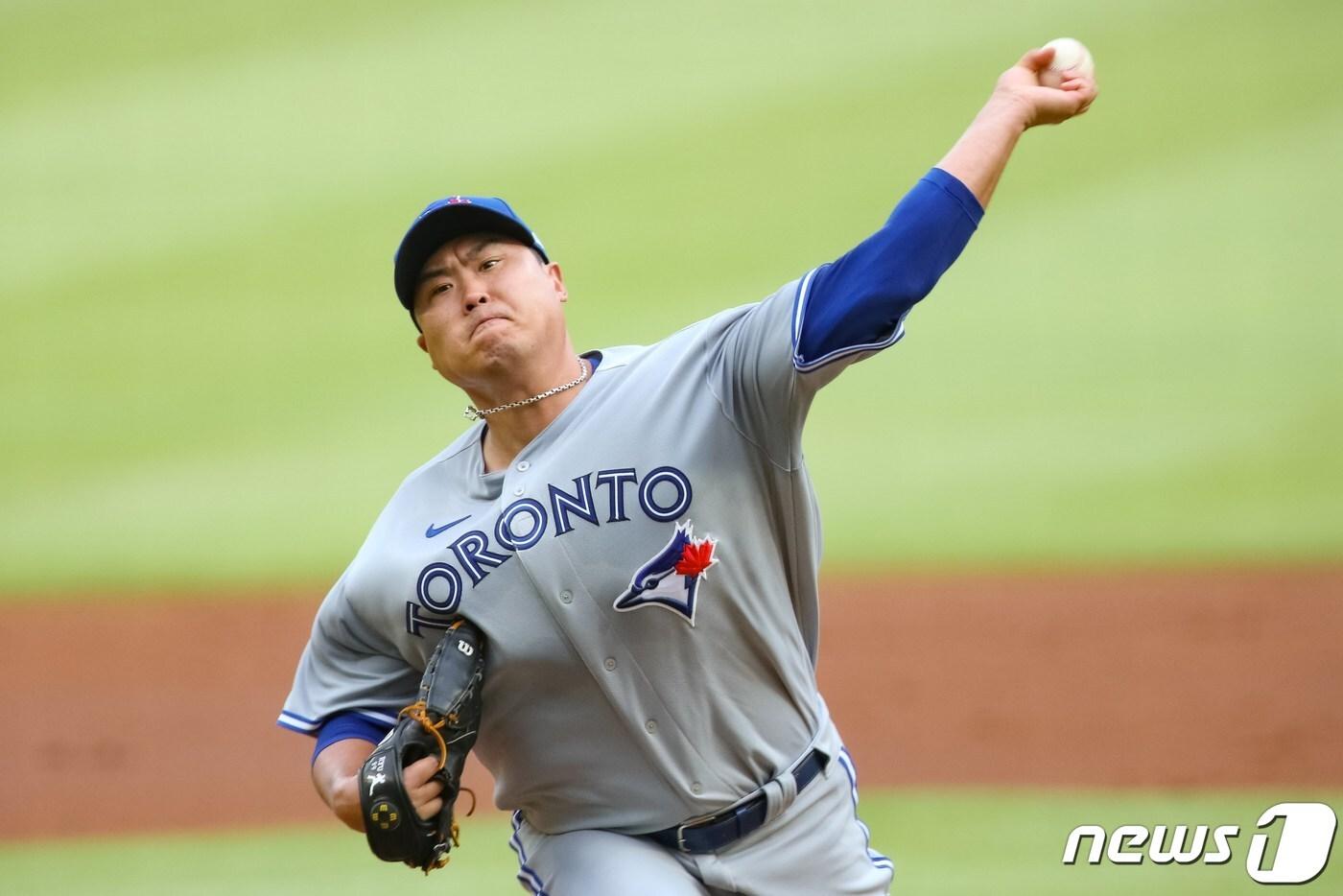 '코리안 몬스터' 류현진(33·토론토 블루제이스)이 6일(한국시간) 미국 조지아주 애틀랜타의 트루이스트파크에서 열린 2020 메이저리그 애틀랜타 브레이브스와 원정 경기에 선발로 등판해 5이닝 1피안타 3볼넷 8탈삼진 무실점 호투를 펼쳤다. ⓒ AFP=뉴스1