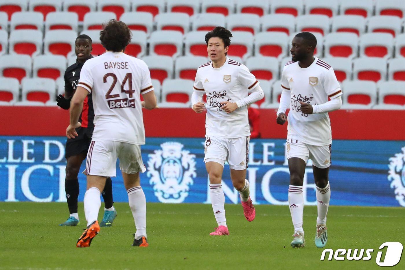 프랑스 보르도의 황의조(가운데) ⓒ AFP=뉴스1