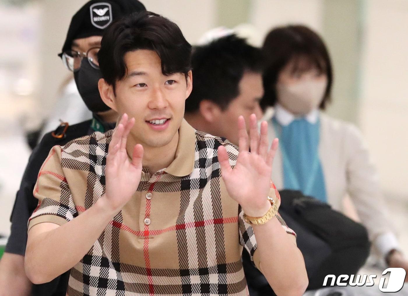 잉글랜드 프로축구 프리미어리그(EPL) 2022-2023 시즌을 마친 손흥민이 30일 인천국제공항 제2여객터미널을 통해 귀국하고 있다. 2023.5.30/뉴스1 ⓒ News1 잉글랜드 프로축구 프리미어리그(EPL) 2022-2023 시즌을 마친 손흥민이 30일 인천국제공항 제2여객터미널을 통해 귀국하고 있다. 2023.5.30/뉴스1 ⓒ News1관련 키워드손흥민손흥민공항패션손흥민버버리파텍필립