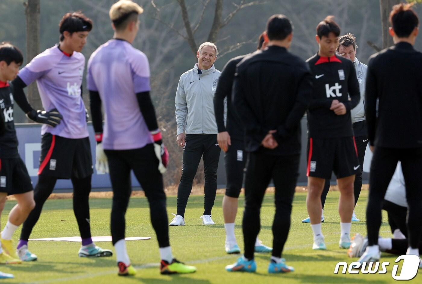 위르겐 클린스만 축구 국가대표팀 감독이 20일 오후 경기 파주트레이닝센터(NFC)에서 열린 첫 소집훈련에서 선수들을 지켜보고 있다. 2023.3.20/뉴스1 ⓒ News1 구윤성 기자