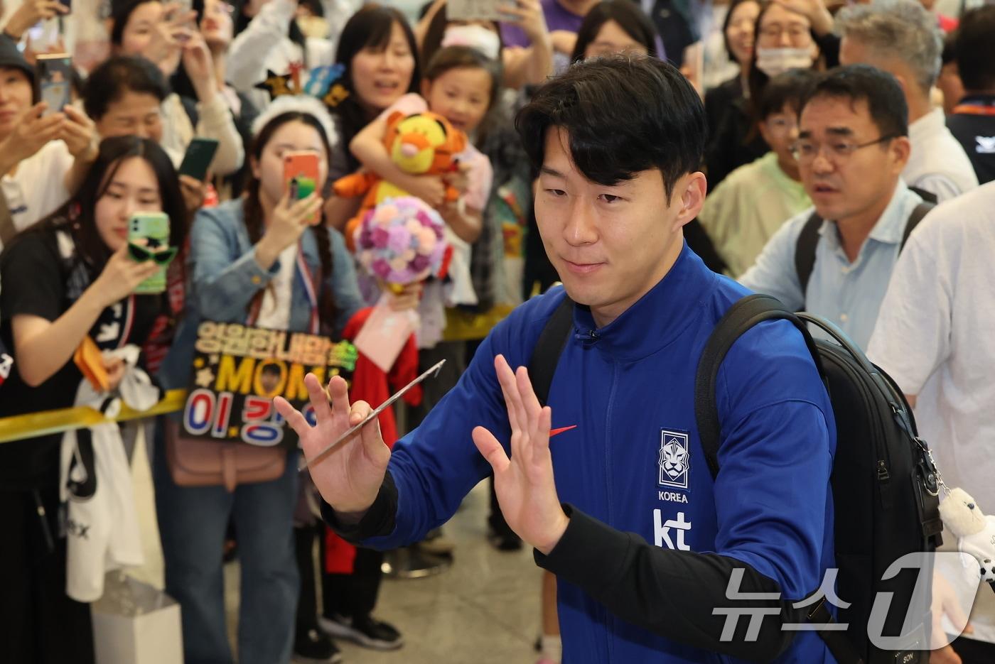 대한민국 축구 국가대표팀 주장 손흥민 선수가 7일 오전 인천국제공항 제2터미널을 통해 귀국하고 있다. 대표팀은 지난 6일(한국시간) 싱가포르 내셔널 스타디움에서 열린 싱가포르와의 2026 북중미 월드컵 아시아 2차 예선 C조 5차전에서 7-0 승리를 거뒀다. 2024.6.7/뉴스1 ⓒ News1 김도우 기자