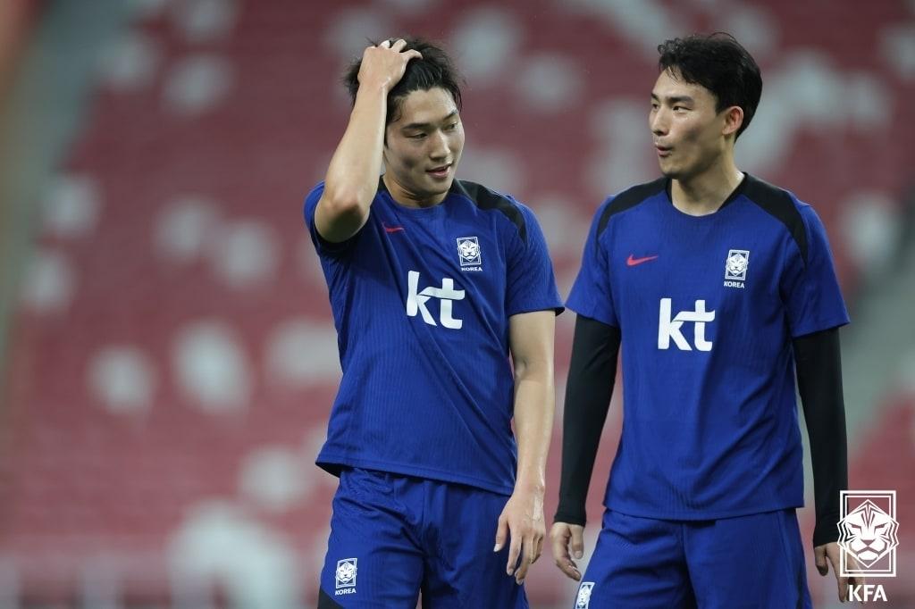 지난 6일 데뷔전 치른 선수들, 선배 앞에서 신고식축구대표팀, 화기애애 분위기 속 11일 중국전 준비국가대표팀 데뷔전을 치른 배준호(왼쪽)(대한축구협회 제공) 8일 오후 경기도 고양시 고양종합운동장 2026 FIFA 북중미 월드컵 2차예선 중국전 오픈트레이닝에서 대표팀 선수들이 훈련을 하고 있다. 2024.6.8/뉴스1 ⓒ News1 김명섭 기자8일 오후 경기도 고양시 고양종합운동장 2026 FIFA 북중미 월드컵 2차예선 중국전 오픈트레이닝에서 대표팀 선수들이 훈련을 하고 있다. 2024.6.8/뉴스1 ⓒ News1 김명섭 기자관련 키워드김도훈호한국 중국배준호 한잔해안영준 기자 호주 꺾은 이민성 감독 "뒷공간 공략 적중…성장한 선수들 자랑스럽다"이민성호, 호주 2-1 제압…U23 아시안컵 4강서 한일전 성사(종합)