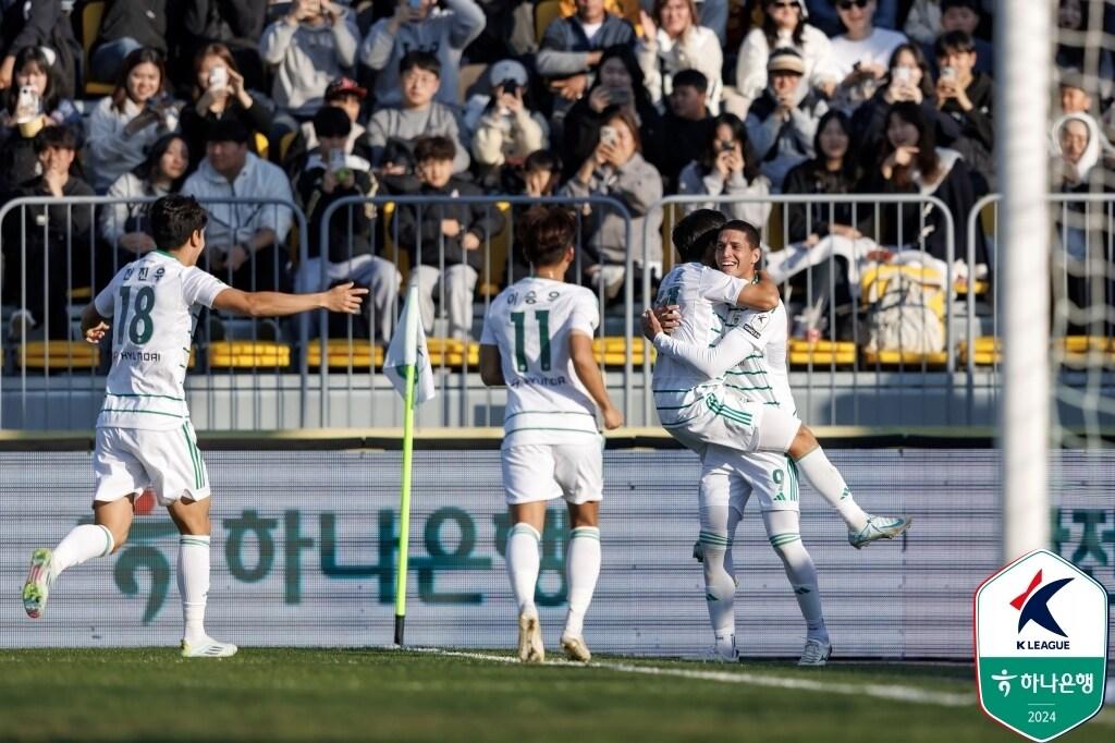 1부 잔류 놓고 12월 1일과 8일 맞대결11위 대구는 충남아산 상대로 1부 잔류 싸움전북 현대 선수들이 24일 열린 하나은행 K리그1 2024 38라운드 광주FC와 원정 경기에서 후반 29분 티아고의 선제골이 터진 후 기뻐하고 있다. (한국프로축구연맹 제공)전북 현대는 24일 열린 하나은행 K리그1 2024 38라운드 광주FC와 원정 경기에서 1-1로 비기며 10위를 차지했다. (한국프로축구연맹 제공)전북 현대는 24일 열린 하나은행 K리그1 2024 38라운드 광주FC와 원정 경기에서 1-1로 비기며 10위를 차지했다. (한국프로축구연맹 제공)대구FC는 24일 열린 하나은행 K리그1 2024 38라운드 인천 유나이티드와 홈 경기에서 패하며 11위가 확정됐다. (한국프로축구연맹 제공)골키퍼로 변신한 무고사. (한국프로축구연맹 제공)관련 키워드프로축구K리그전북 현대서울 이랜드대구FC충남아산이상철 기자 더더욱 강해진 '스타 군단' 다저스…김혜성, 주전 경쟁 가시밭길'심판 배정 문제' WKBL, 경기 지연 사과…"재정위 개최, 후속 조치"관련 기사프로축구연맹, K리그2-K리그3 승강제 도입·555억 예산 승인박태하 포항 감독 "주축 선수 이탈? 대책 있다…더 좋은 성적 낼 것"K리그1 전북, 새 대표이사에 최재호 현대자동차 경영지원본부장K리그1 전북, 다재다능 미드필더 김영환 영입K리그1 포항, 중앙 수비수 진시우 영입…뒷문 강화