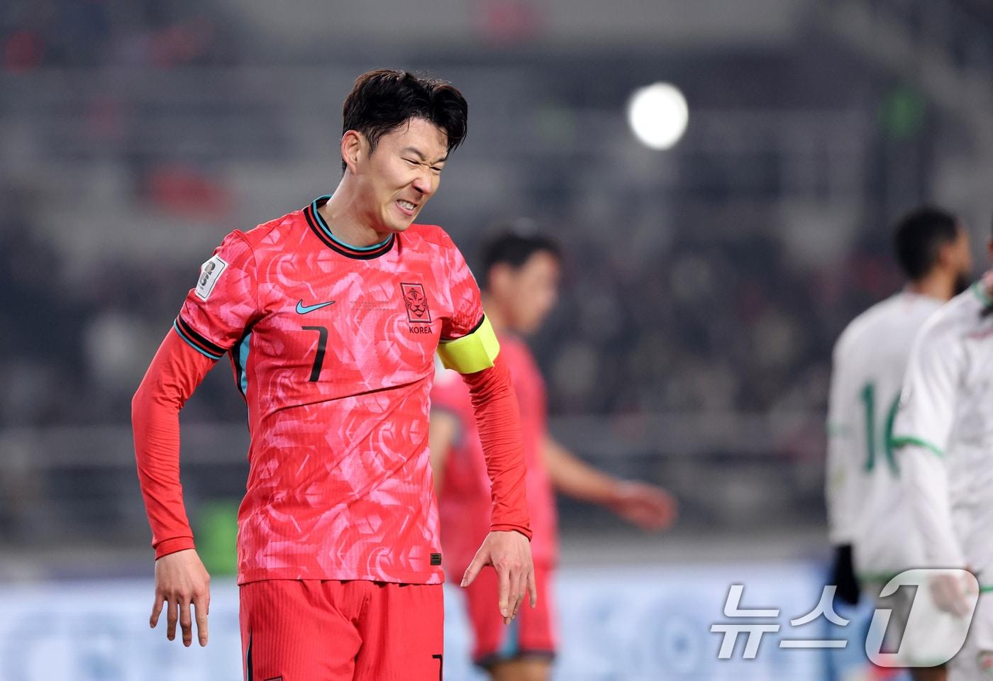 20일 오후 경기 고양시 고양종합운동장에서 열린 2026 국제축구연맹(FIFA) 북중미 월드컵 아시아 3차 예선 B조 7차전 대한민국과 오만의 경기에서 대한민국 손흥민이 찬스를 놓치고 아쉬워하고 있다. 2025.3.20/뉴스1 ⓒ News1 이승배 기자