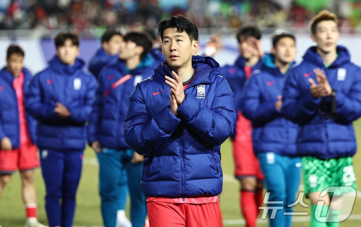 SNS 통해 A매치 2연전 소감 전해홍명보호, 오만·요르단과 연달아 1-1 무승부25일 오후 경기 수원월드컵경기장에서 열린 2026 국제축구연맹(FIFA) 북중미 월드컵 아시아 3차 예선 B조 8차전 대한민국과 요르단의 경기, 대한민국 손흥민이 1대1 무승부 후 관중에게 인사하고 있다. 2025.3.25/뉴스1 ⓒ News1 김도우 기자관련 키워드손흥민 SNS손흥민 소감3월 A매치홍명보호안영준 기자 호주 꺾은 이민성 감독 "뒷공간 공략 적중…성장한 선수들 자랑스럽다"이민성호, 호주 2-1 제압…U23 아시안컵 4강서 한일전 성사(종합)