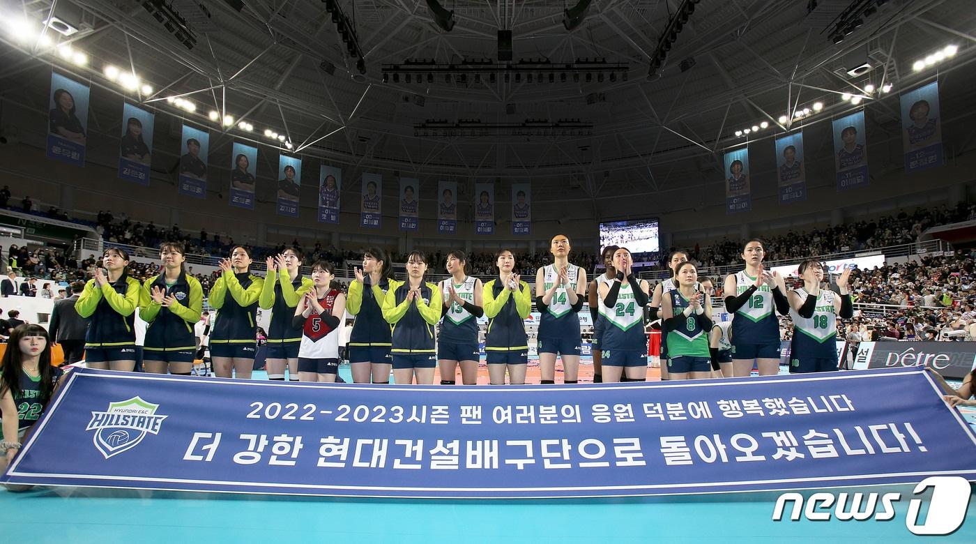 현대건설 선수단. (현대건설 배구단 제공)관련 키워드v리그현대건설야스민김연견양효진이다현권혁준 기자 기업은행, 현대건설 '대역전극' 빌미된 비디오 판독 '오독' 결론차상현 감독·이숙자 코치, 'VNL 강등' 여자 배구 대표팀 소방수 낙점