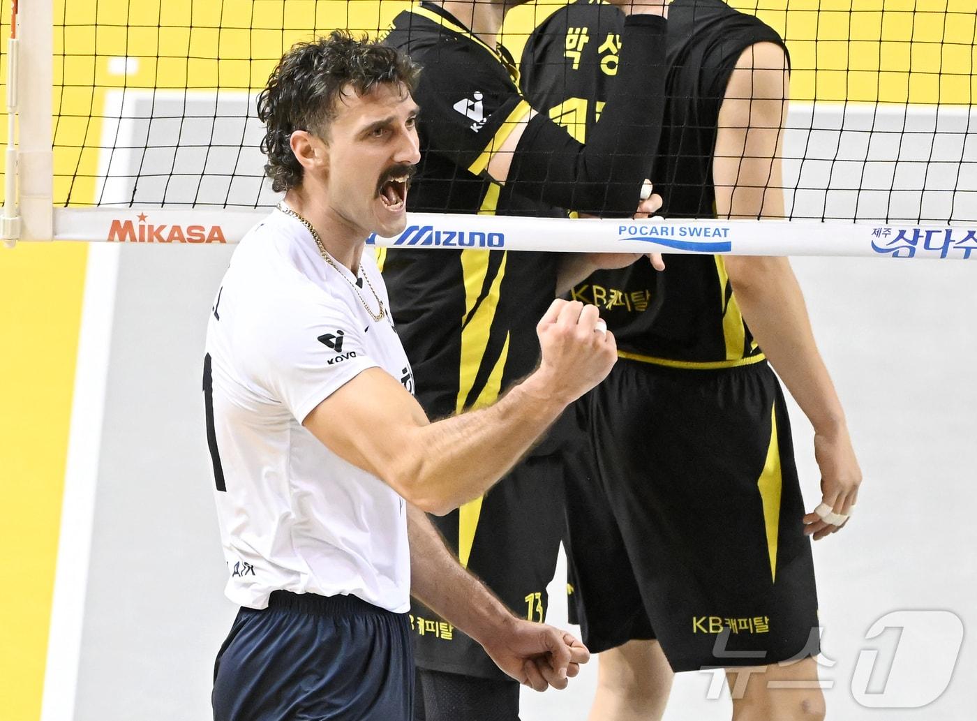 홈에서 3-0 셧아웃…정한용, 블로킹 3개 비예나 봉쇄KB손보 범실 21개 자멸…3차전은 30일 의정부서 열려대한항공 카일 러셀이 28일 인천 계양체육관에서 열린 도드람 2024-25 V리그 남자부 플레이오프(3전 2선승제) 2차전 KB손해보험과의 경기에서 공격을 성공시킨 뒤 기뻐하고 있다. (KOVO 제공)대한항공 정한용(왼쪽). (KOVO 제공)대한항공 카일 러셀이 28일 인천 계양체육관에서 열린 도드람 2024-25 V리그 남자부 플레이오프 2차전 KB손해보험과의 경기에서 스파이크 서브를 시도하고 있다. (KOVO 제공)관련 키워드현장취재KB손해보험대한항공러셀정한용비예나권혁준 기자 'PGA 복귀' 김성현 개막전 첫날 3위…'데뷔전' 이승택 41위(종합)업비트, 밀라노 동계올림픽 '팀 코리아' 응원 마케팅 나선다관련 기사'PO 탈락' KB손보 아폰소 감독, 챔프 1차전 '직관'…"다음 시즌 준비"대한항공 세터 유광우, 이번엔 조연 아닌 주연으로 '12번째 우승' 도전대한항공 '챔프전 DNA' 살아 있네…1차전 내주고 2차·3차전 역스윕"현대캐피탈 나와라"…대한항공, KB손보 꺾고 8연속 챔프전 진출천안행 티켓 주인공은 "나야 나"…KB손보·대한항공 필승 다짐