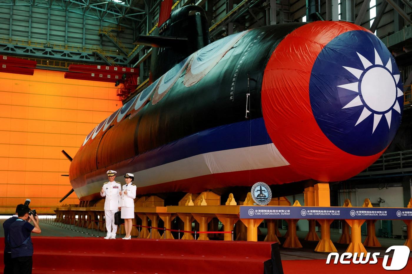 28일(현지시간) 대만의 첫 자국산 방어형 잠수함(IDS) '하이쿤함'의 진수식이 열렸다. 하이쿤함은 내년 말까지 실전 배치될 예정이다. 2023.09.28/ ⓒ 로이터=뉴스1 ⓒ News1 박재하 기자