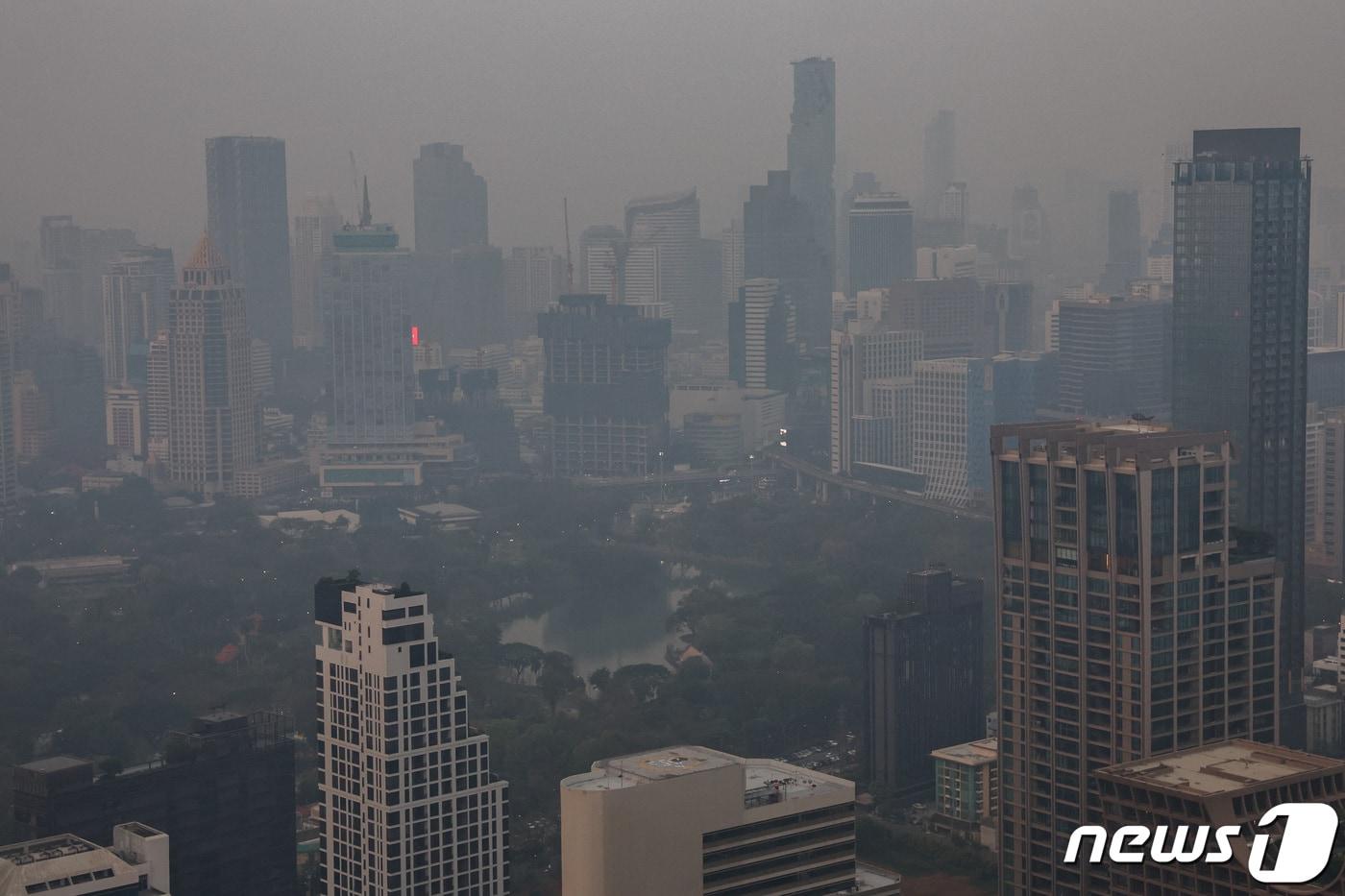 15일(현지시간) 태국 방콕의 하늘이 대기 오염으로 뿌옇게 보이고 있다. 2024.02.15 ⓒ 로이터=뉴스1 ⓒ News1 정지윤 기자